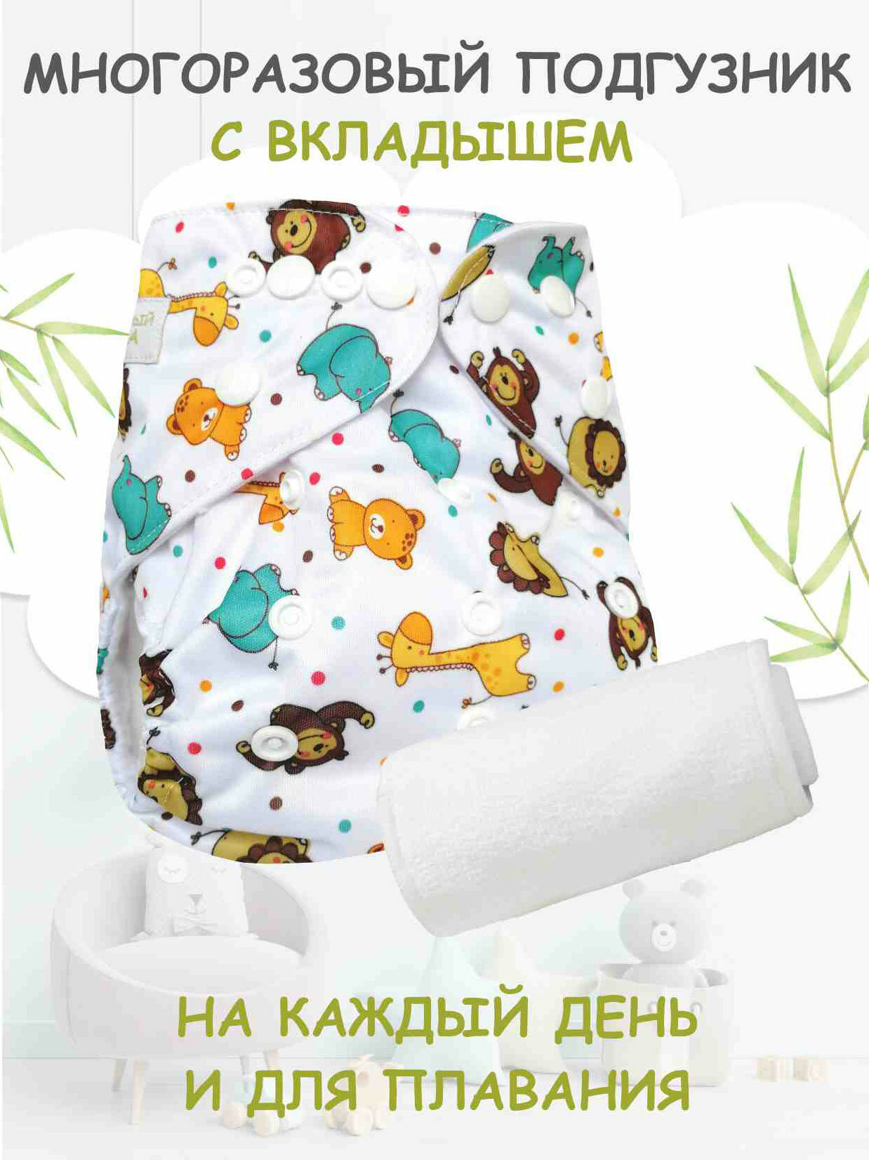 Многоразовый подгузник "Бамбуковый мишка" Классика Зверята + 1 вкладыш в комплекте микрофибра информация: