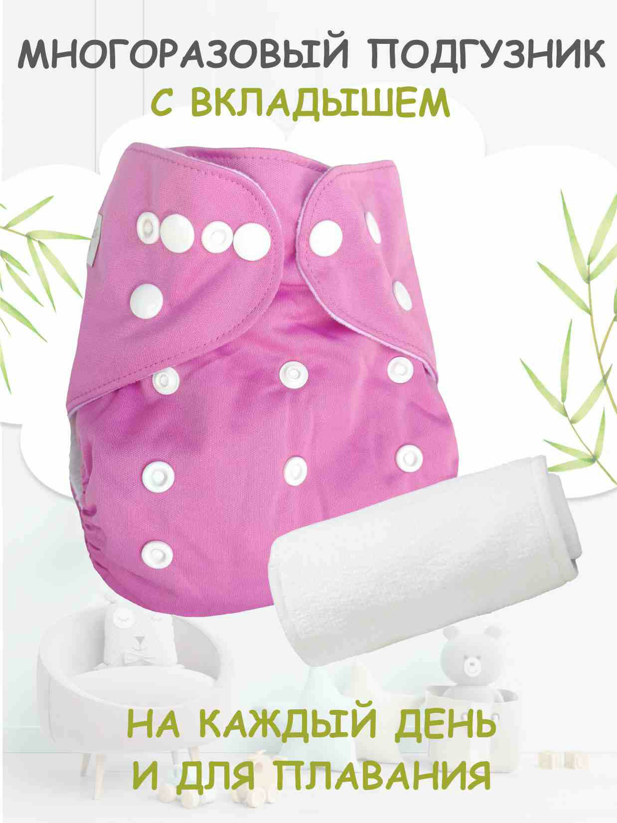 Многоразовый подгузник "Бамбуковый мишка" Классика Розовый + 1 вкладыш в комплекте микрофибра информация:
