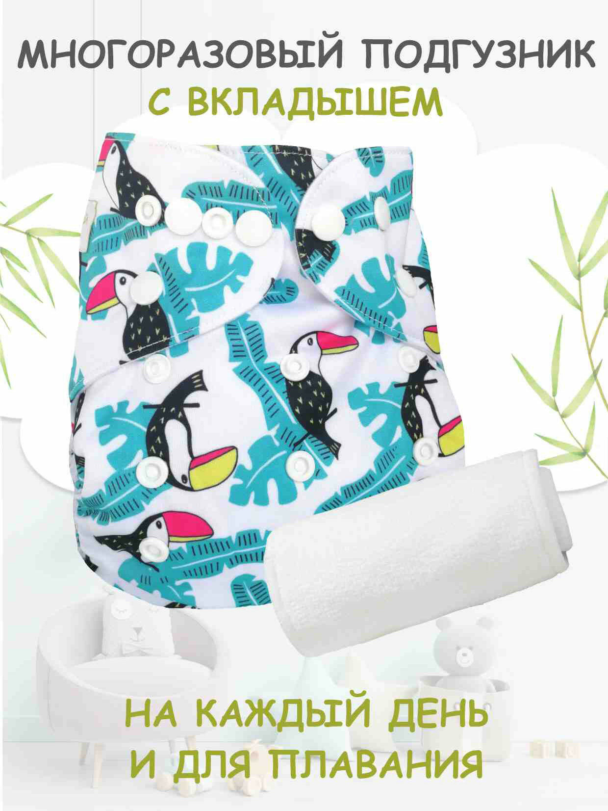 Многоразовый подгузник "Бамбуковый мишка" Классика Туканы + 1 вкладыш в комплекте микрофибра информация: