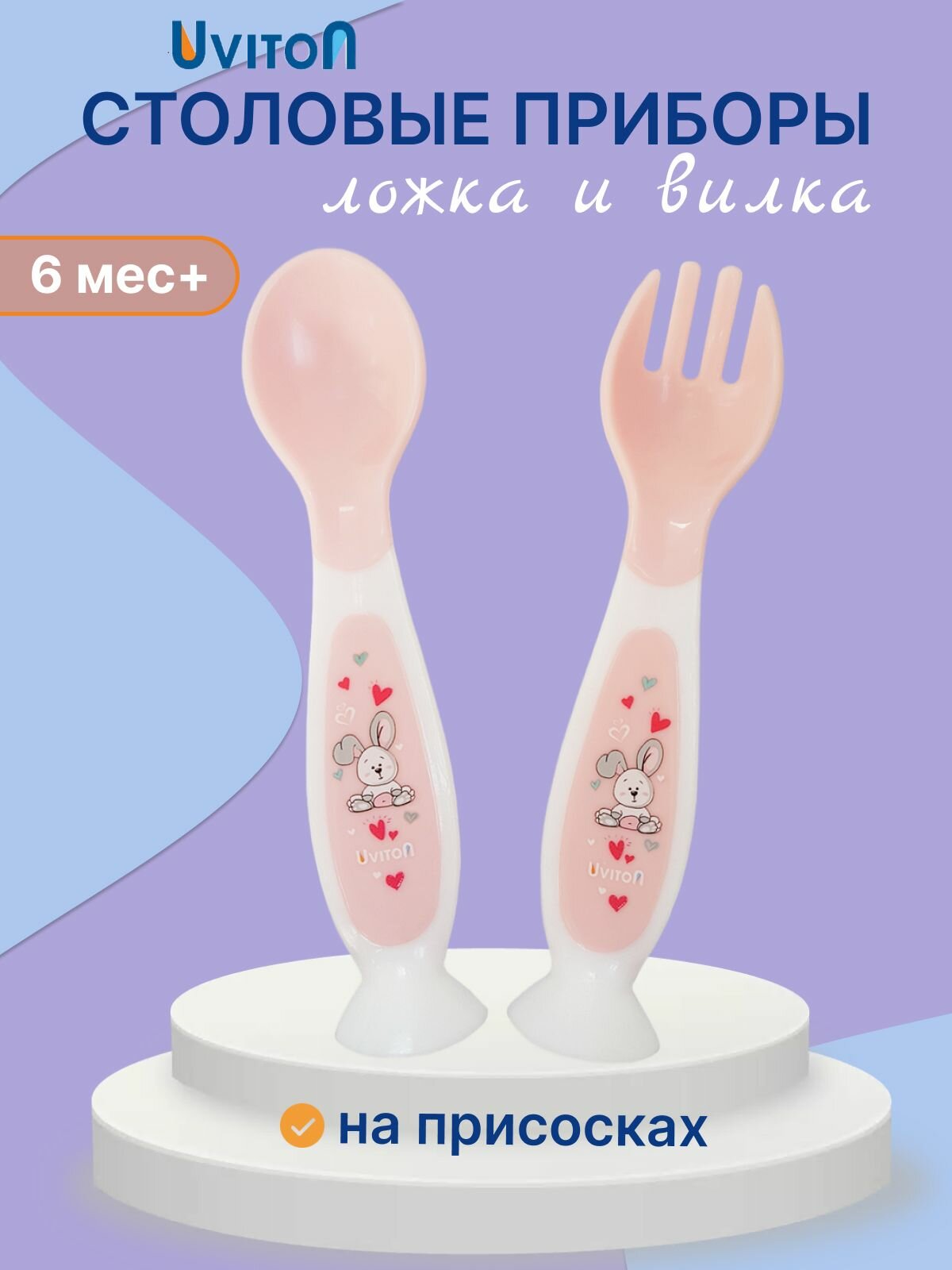 Ложка и вилка для прикорма, набор на присоске детский, 6+ мес информация: