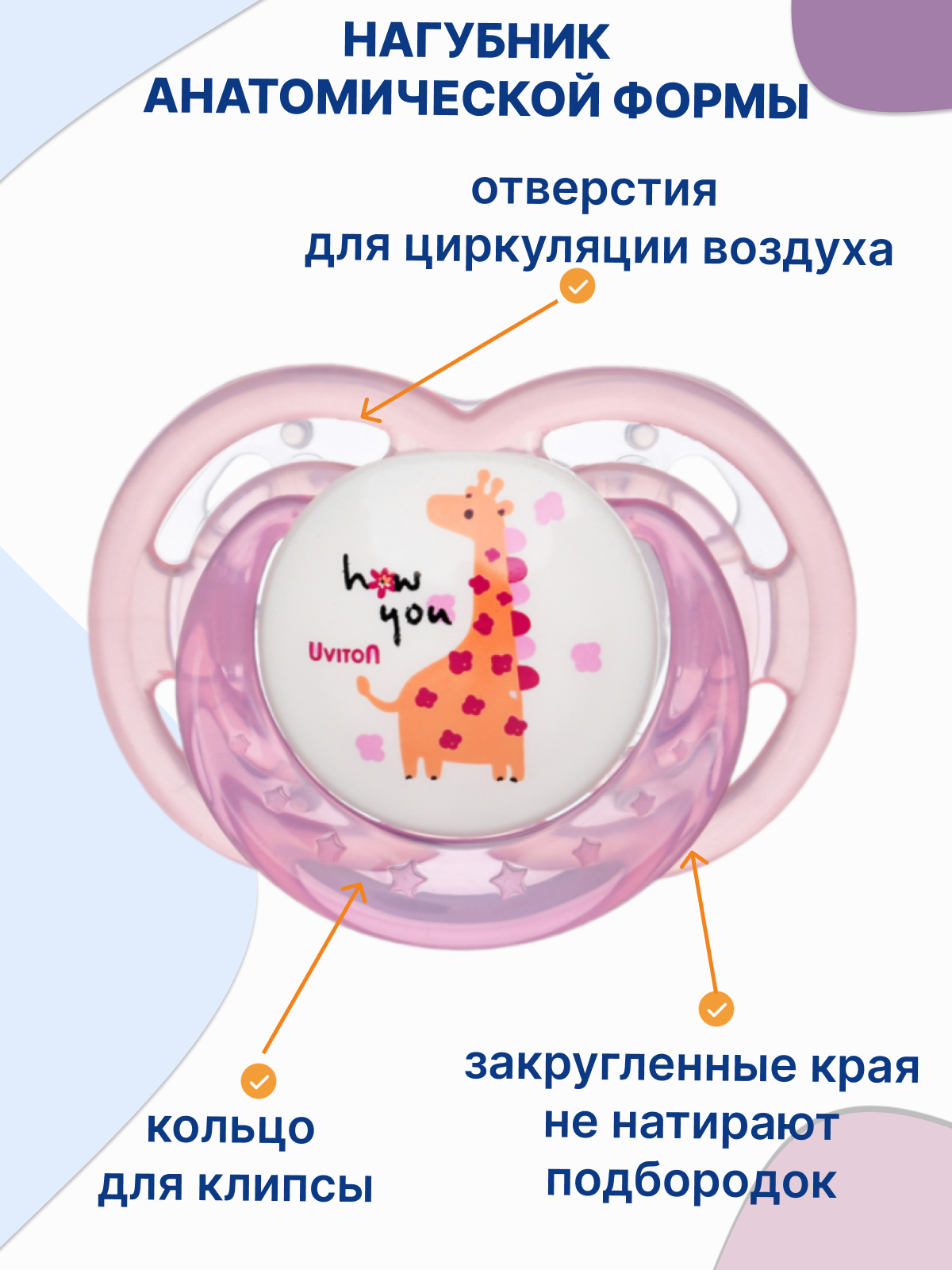 Пустышка Uviton, ортодонтические, силикон, для 6-12мес, 2шт 252 ₽