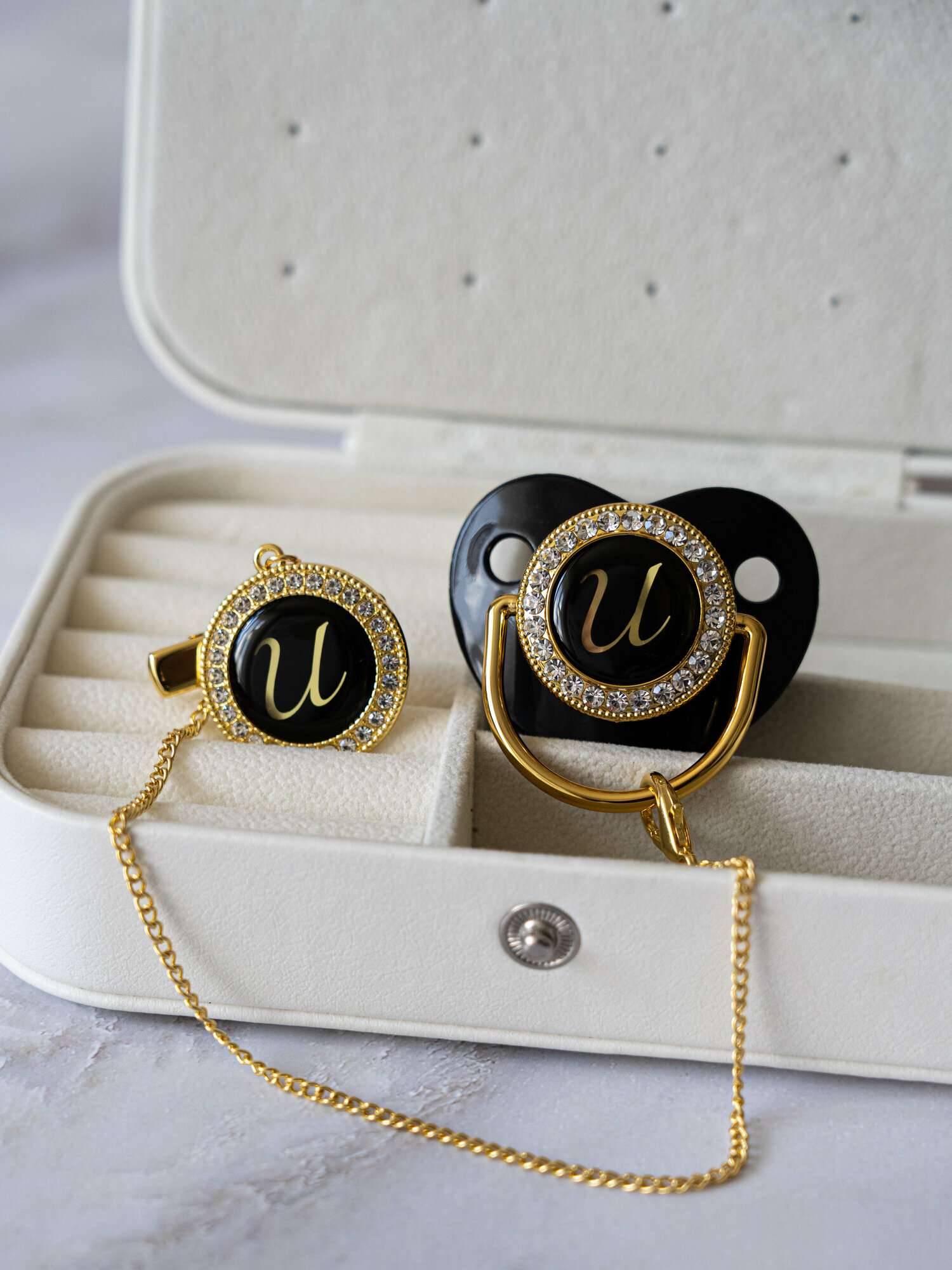 Пустышка с буквой П и держатель в стразах