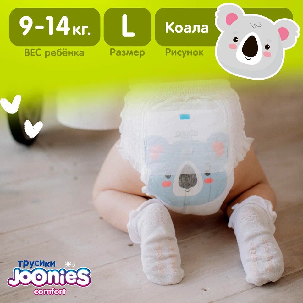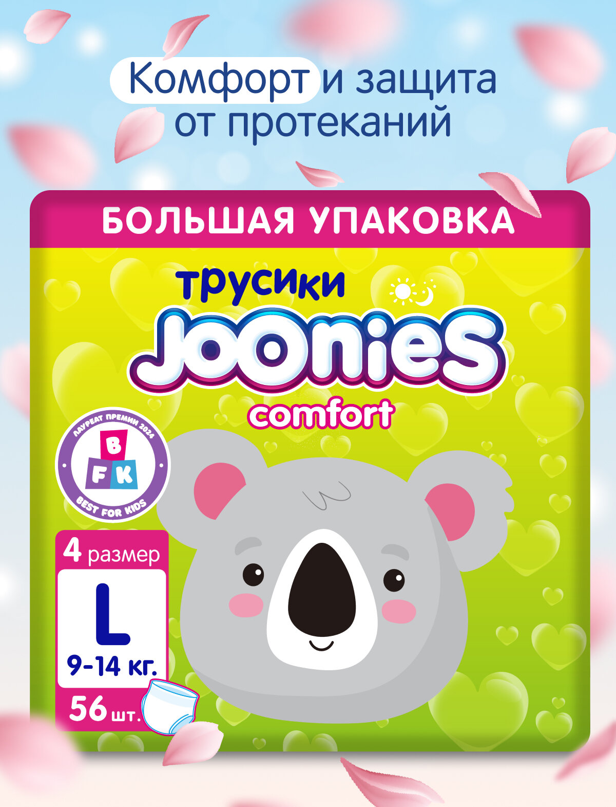JOONIES Comfort Подгузники-трусики, размер L (9-14 кг), MEGA PACK 56 шт. информация: