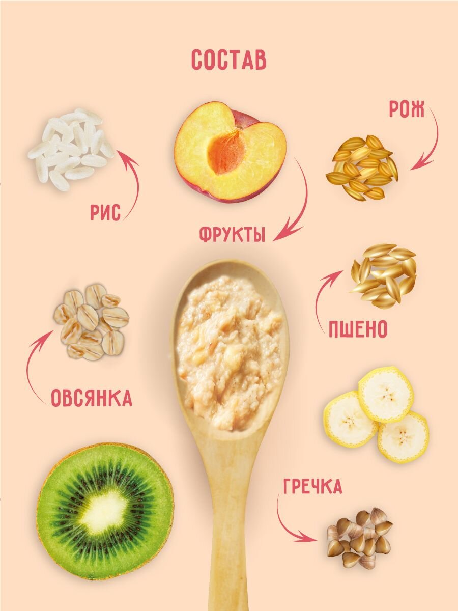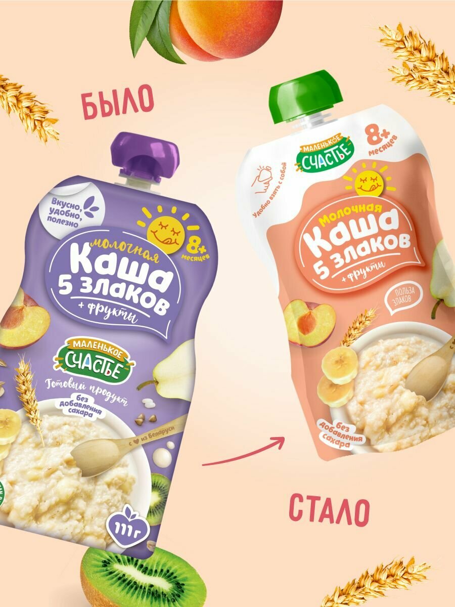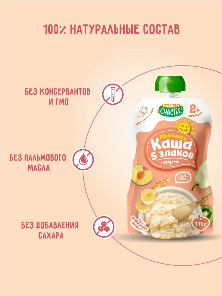 Фруктовое пюре с молочной кашей Маленькое Счастье 5 злаков 111 гр x 12 шт с 8 месяцев информация:
