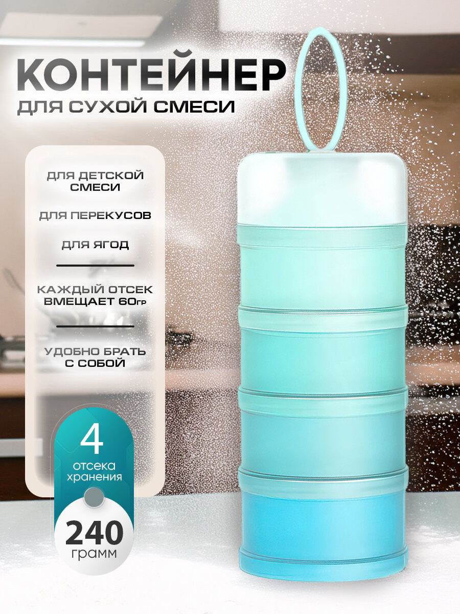 Контейнер для детской смеси с крючком "4в1" (голубой) информация: