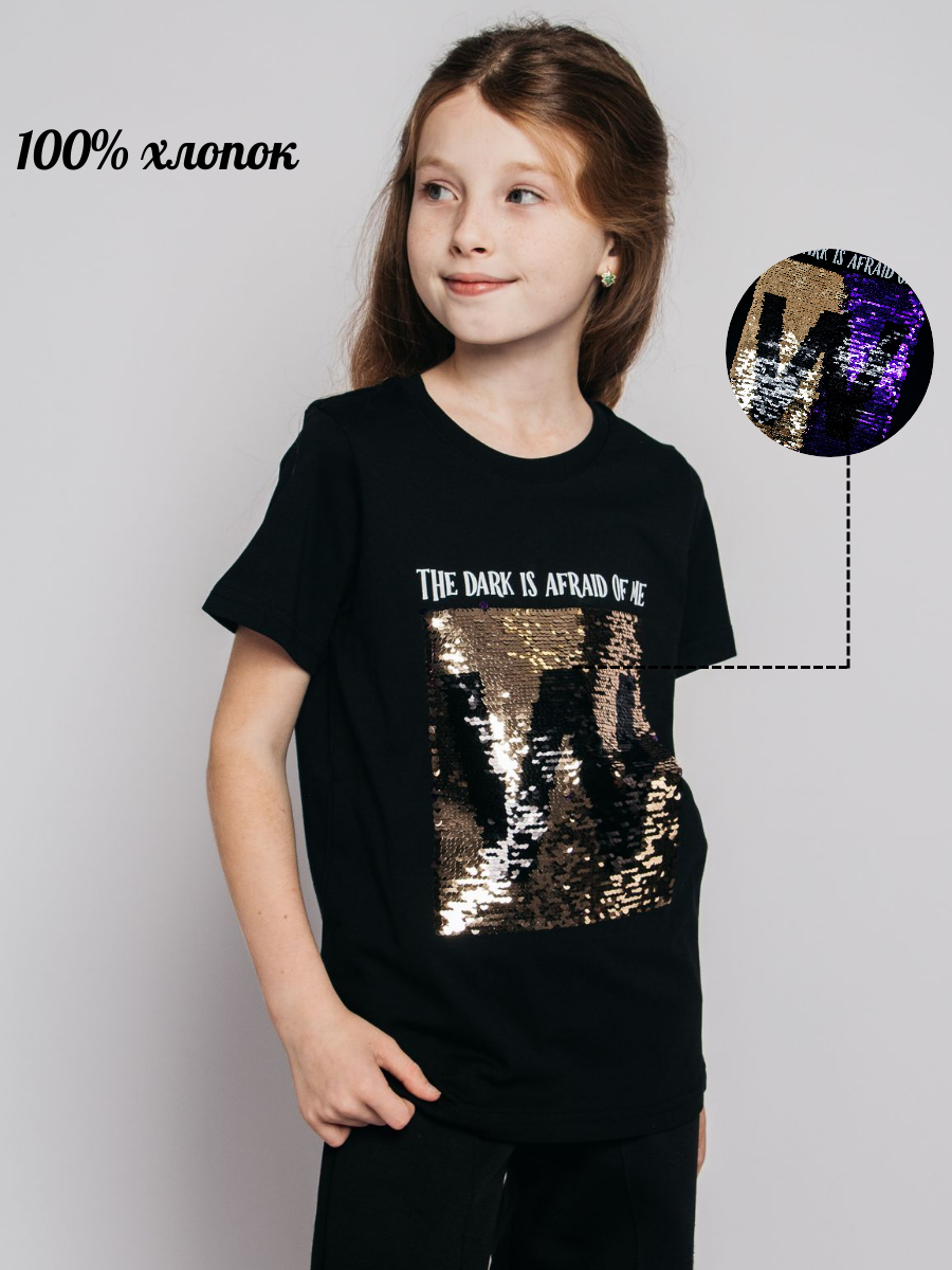 Футболка Let's Go Футболка, размер 128-64, золотой, черный, фиолетовый информация: