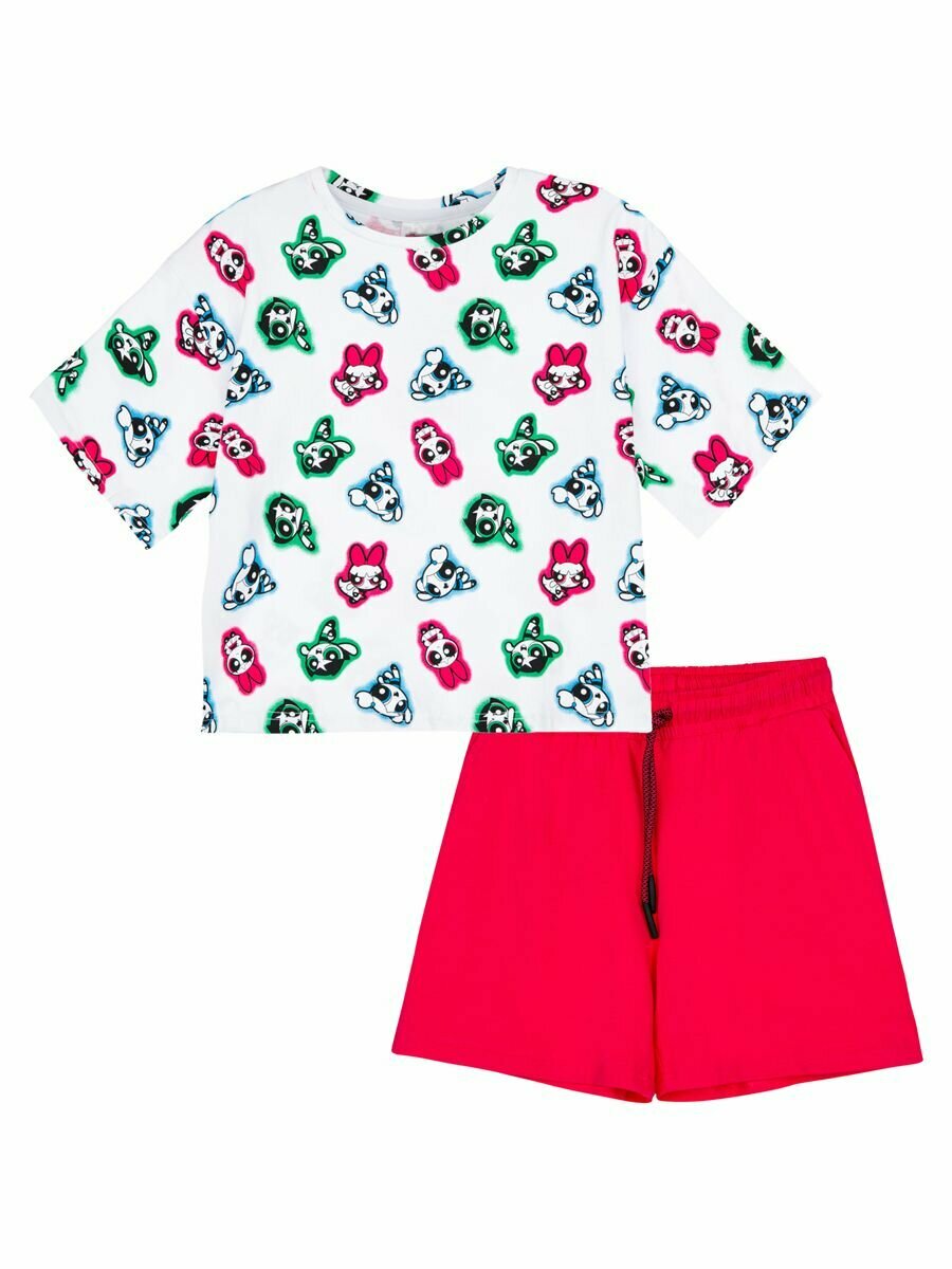 Комплект одежды playToday Весна-лето 2025, размер 140, белый/малиновый 1 462 ₽