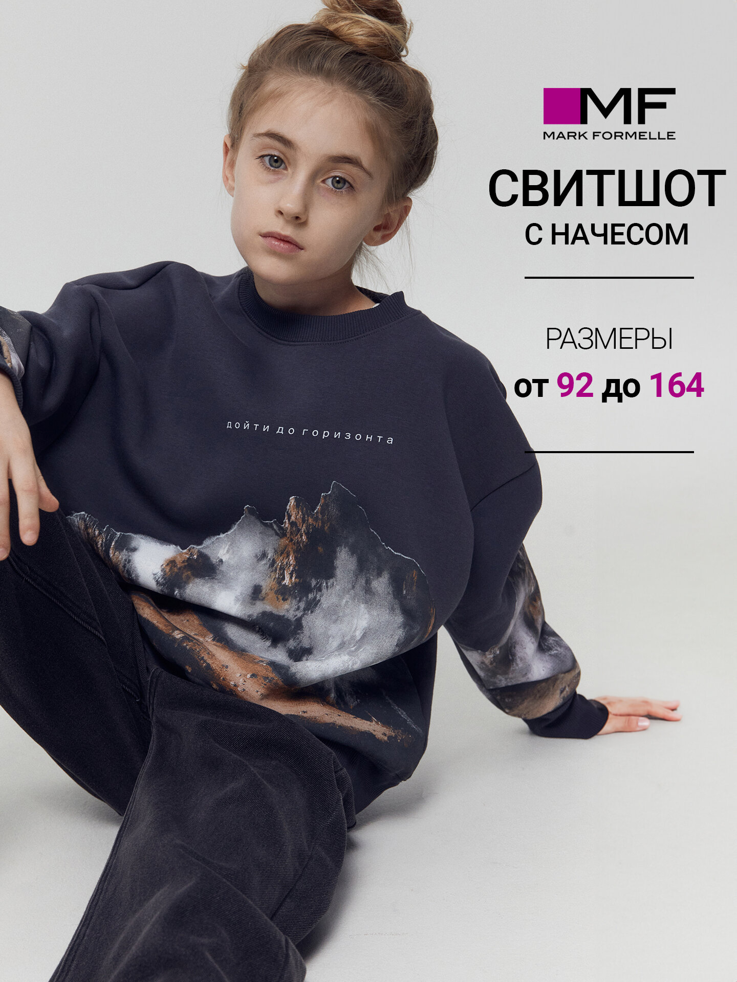 Свитшот MARK FORMELLE для девочек, размер 128/134, серый 1 066 ₽