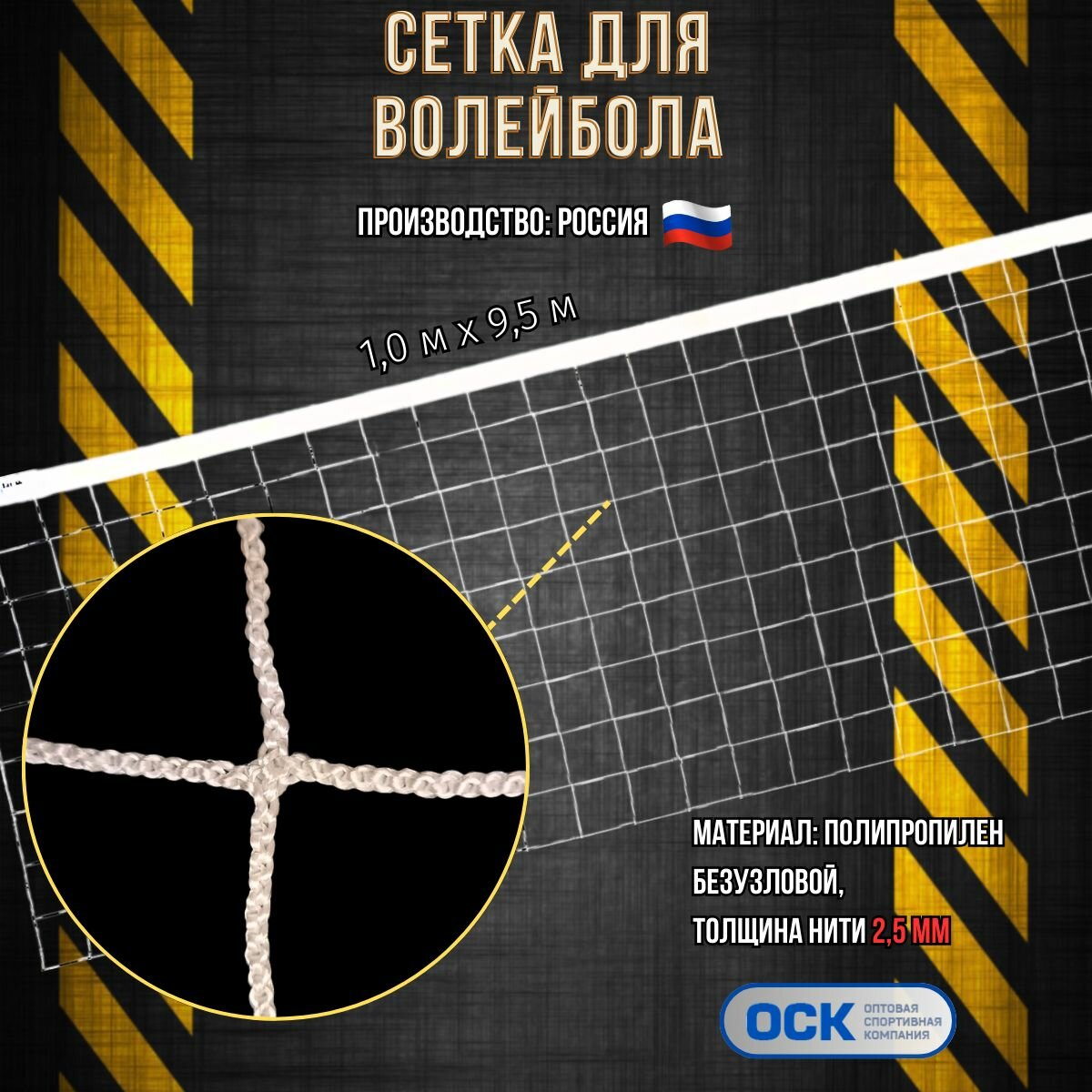 10 цен на Сетка волейбол, ячейка 100х100мм, нить 2.5мм, размер 9.5х1.0м