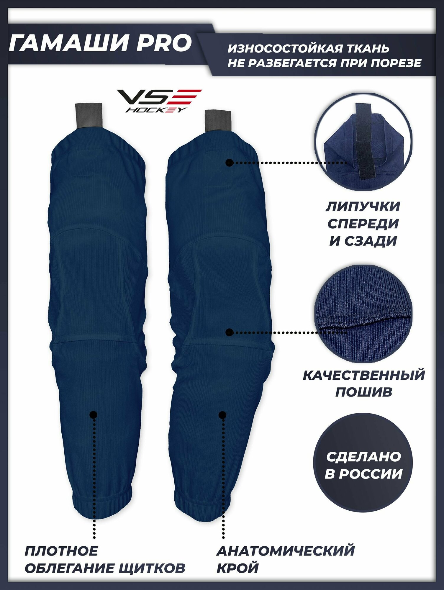 Отзывы на Гамаши хоккейные VseHockey Базовая коллекция, размер YTH+ - 55 см, темно-синий