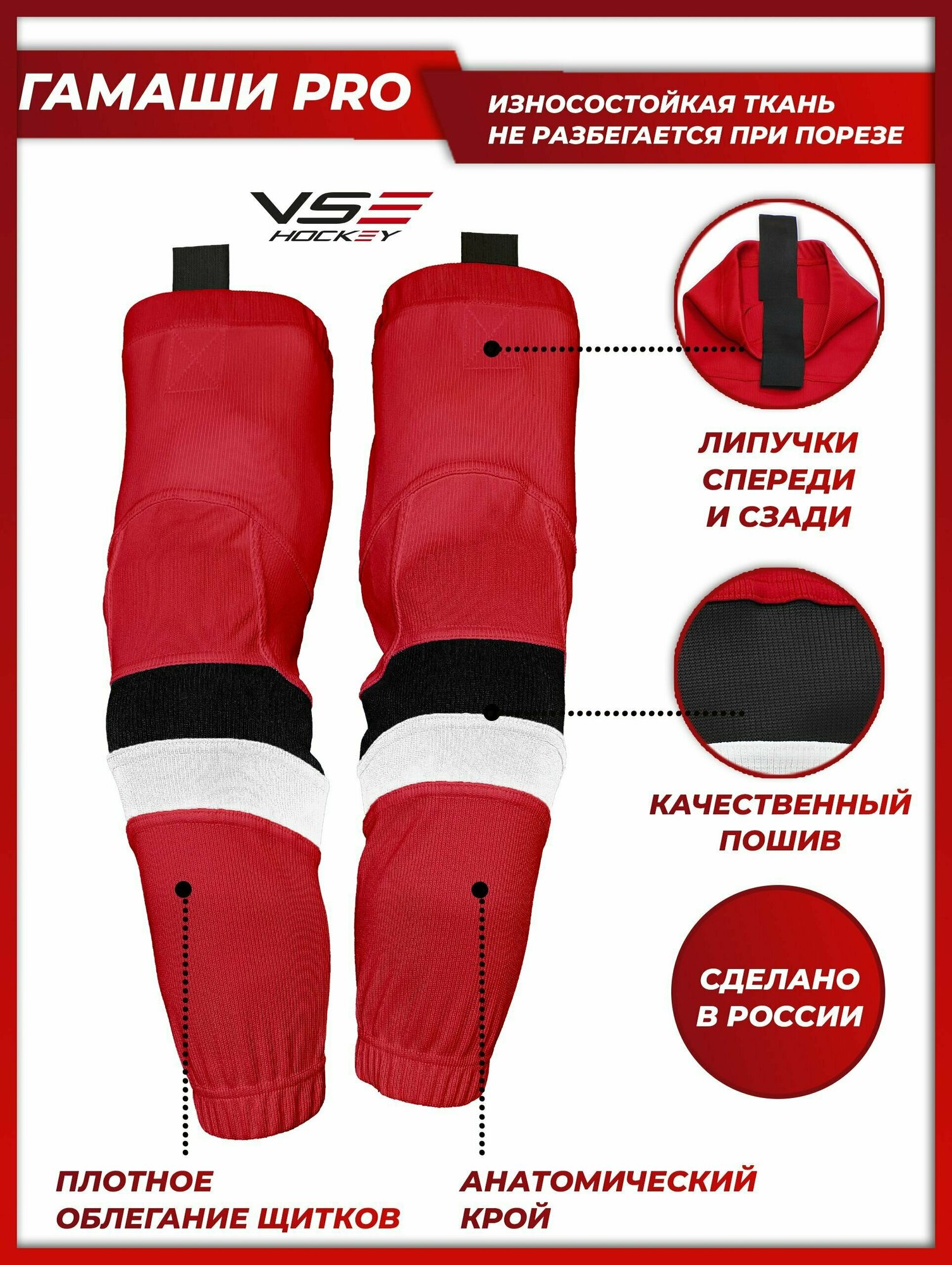 Гамаши хоккейные VseHockey Базовая коллекция, размер YTH+ - 55 см, белый, красный, черный информация: