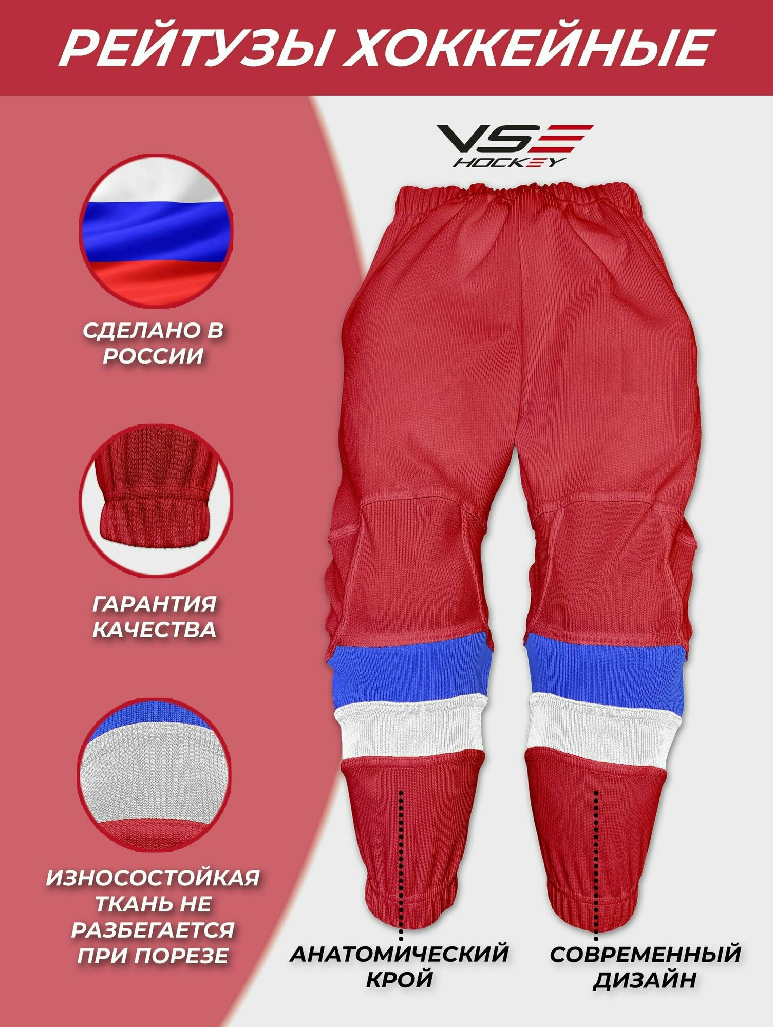 Рейтузы хоккейные VseHockey Базовая коллекция, размер JR-2, синий, красный, белый информация: