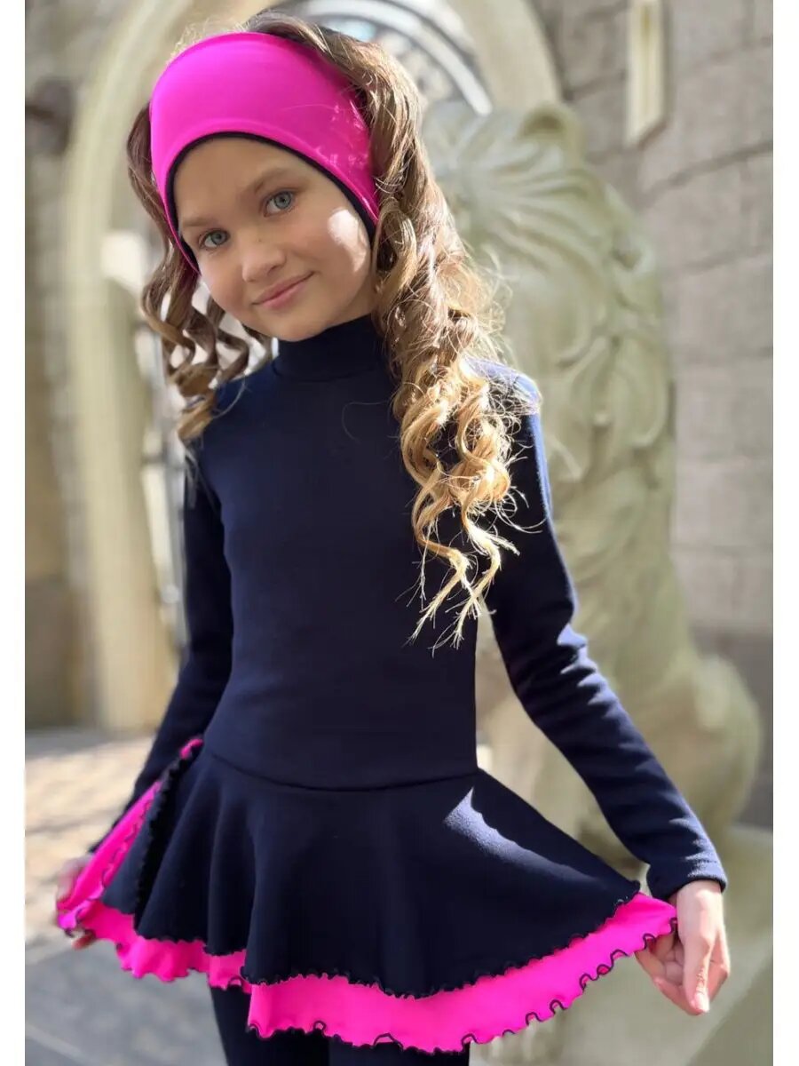 Костюм для фигурного катания Olivi Classic Утепленный комбинезон, размер M, темно-синий/розовый 7 500 ₽