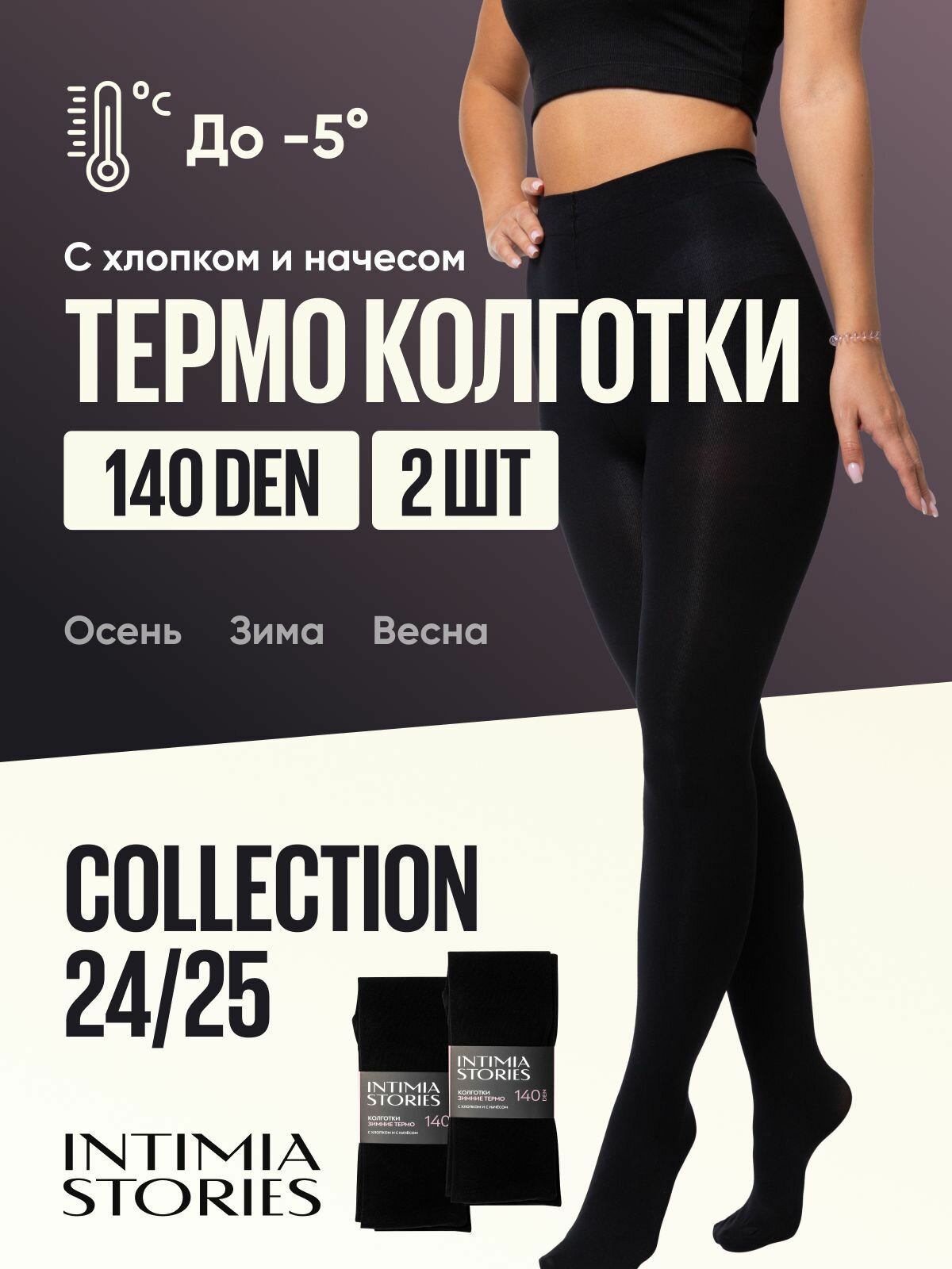 Колготки Intimia Stories, 140 den, 2 шт., размер L, черный 206 ₽