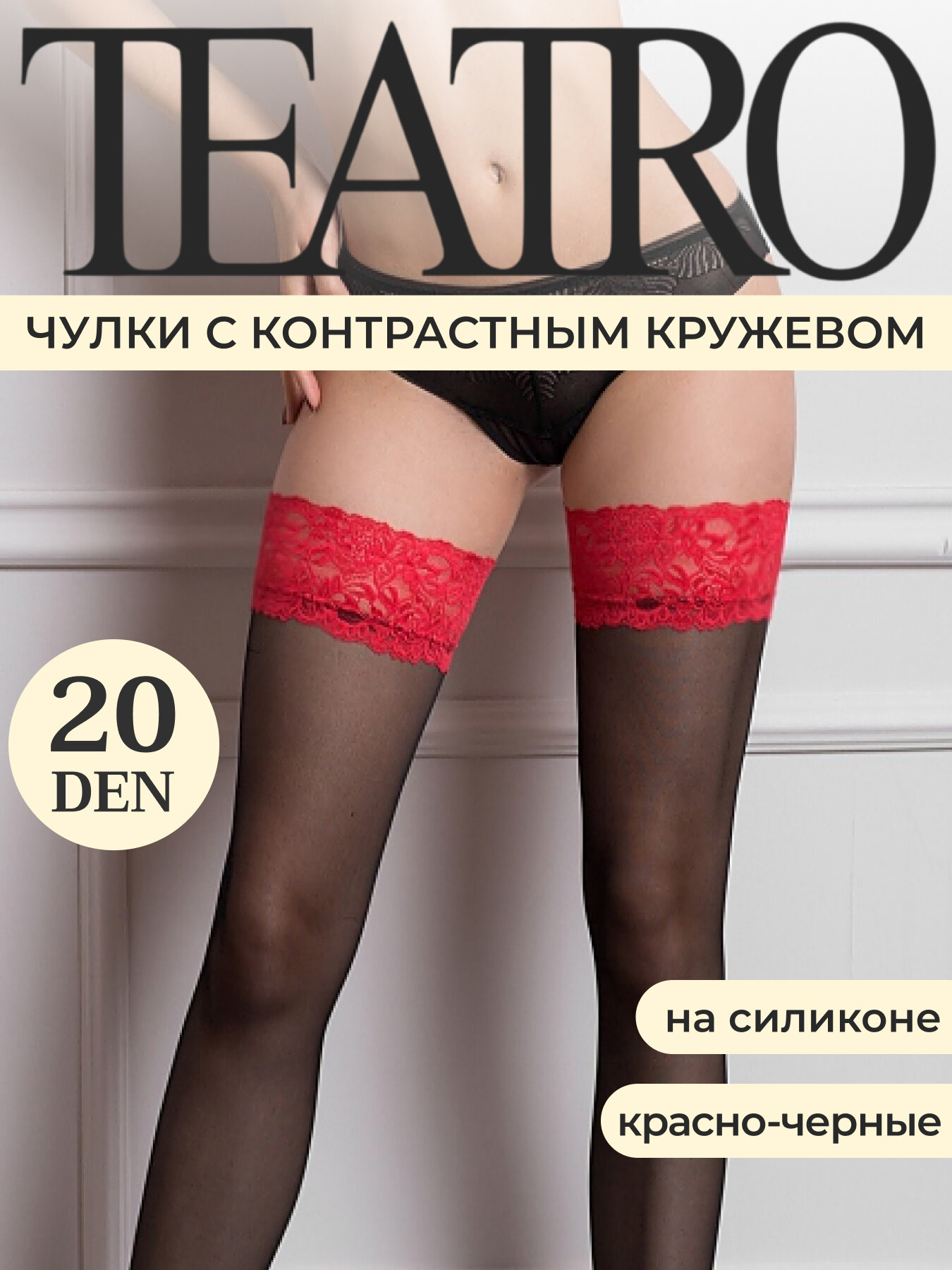 10 цен на Чулки TEATRO, 20 den, размер 5, черный/красный