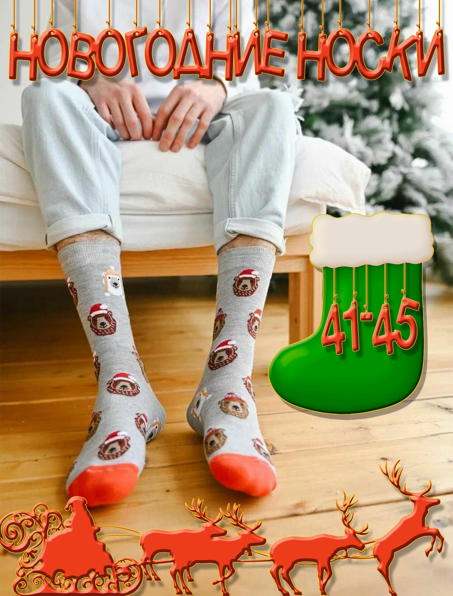 Носки Happy Frensis Осень-зима 2023, комплект, 2 пары, размер 41-45, серый, белый, красный 800 ₽
