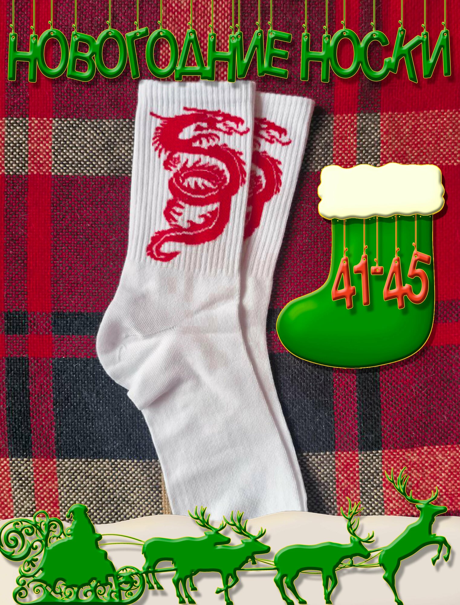 Носки Happy Frensis Осень-зима 2023, комплект, 2 пары, размер 41-45, белый, зеленый, красный 800 ₽