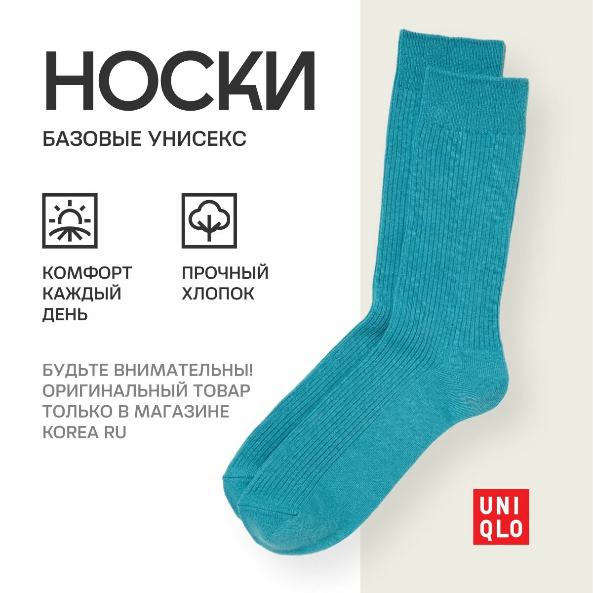 10 цен на Носки Uniqlo Базовая коллекция, размер 26, бирюзовый