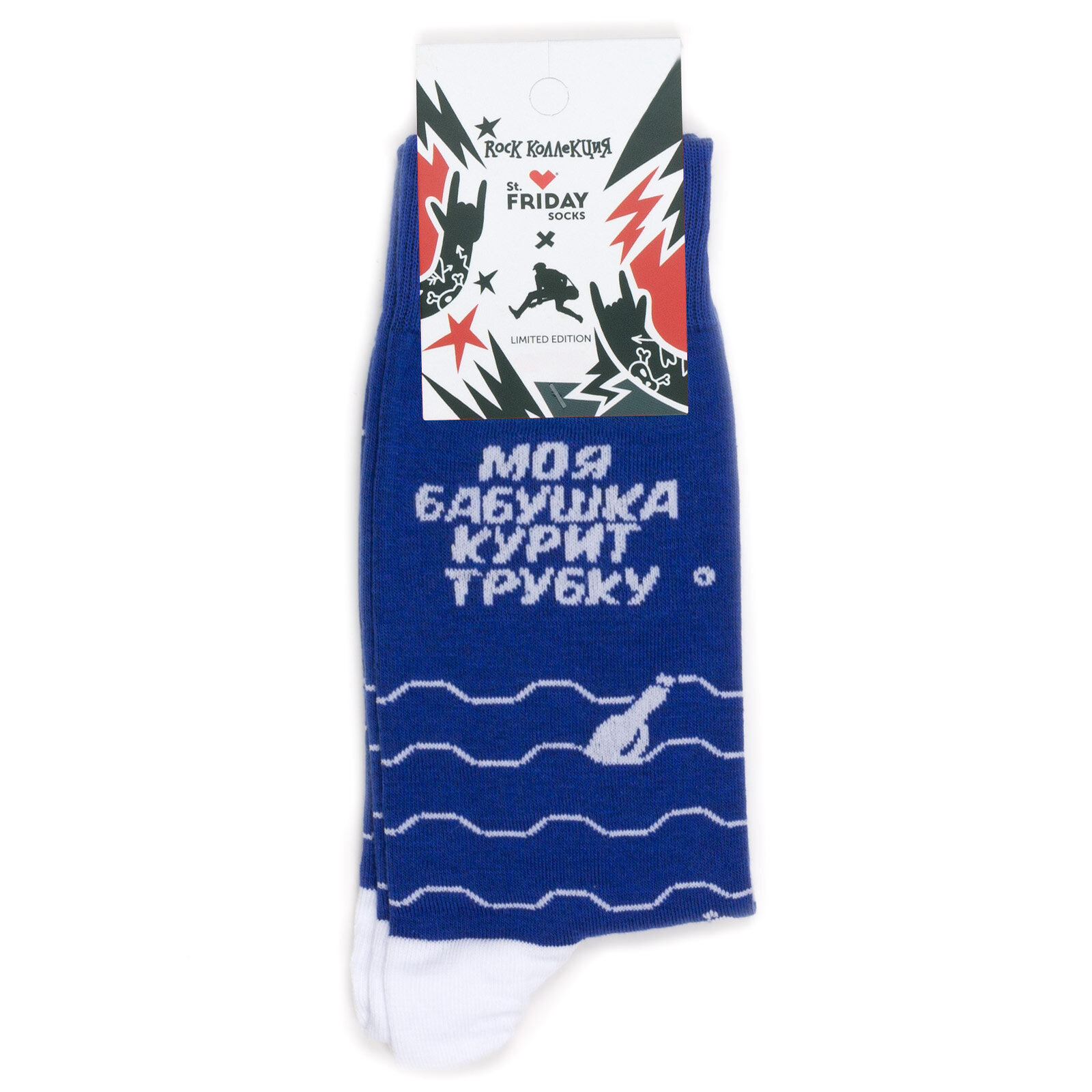 Носки St. Friday Русский Рок - Сукачев - Моя бабушка курит трубку, размер 42-46, белый, серый, синий информация: