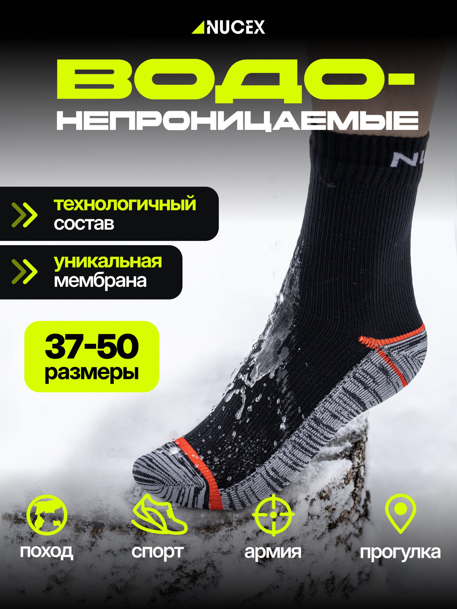 Носки NUCEX, размер M, черный 1 814 ₽