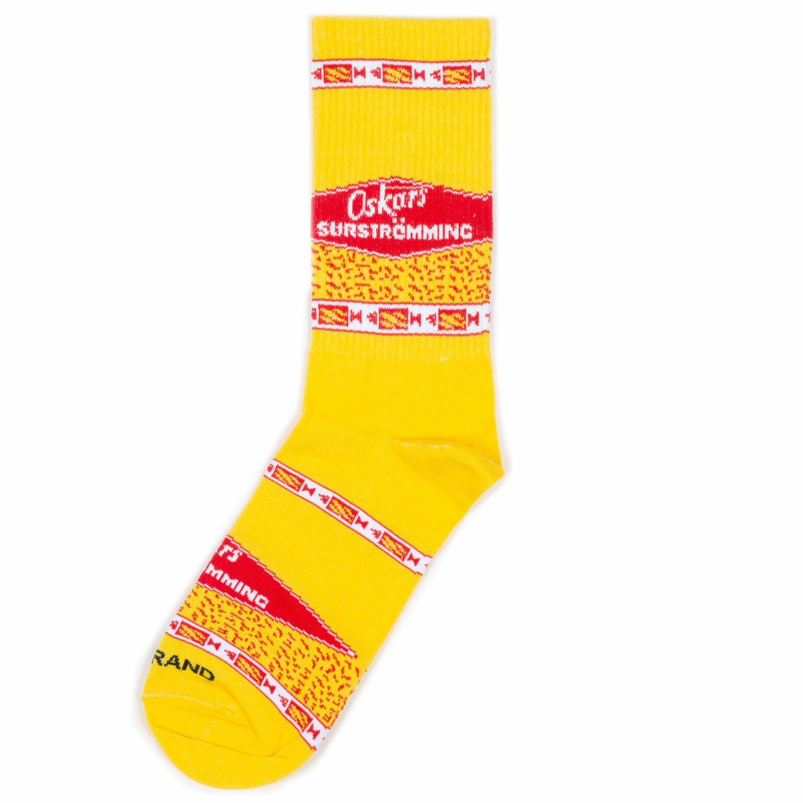 Носки BOOOMERANGS носки с рисунками - "Дизайн упаковки" - Сюрстрёмминг, размер 34-39, черный, красный, желтый 590 ₽