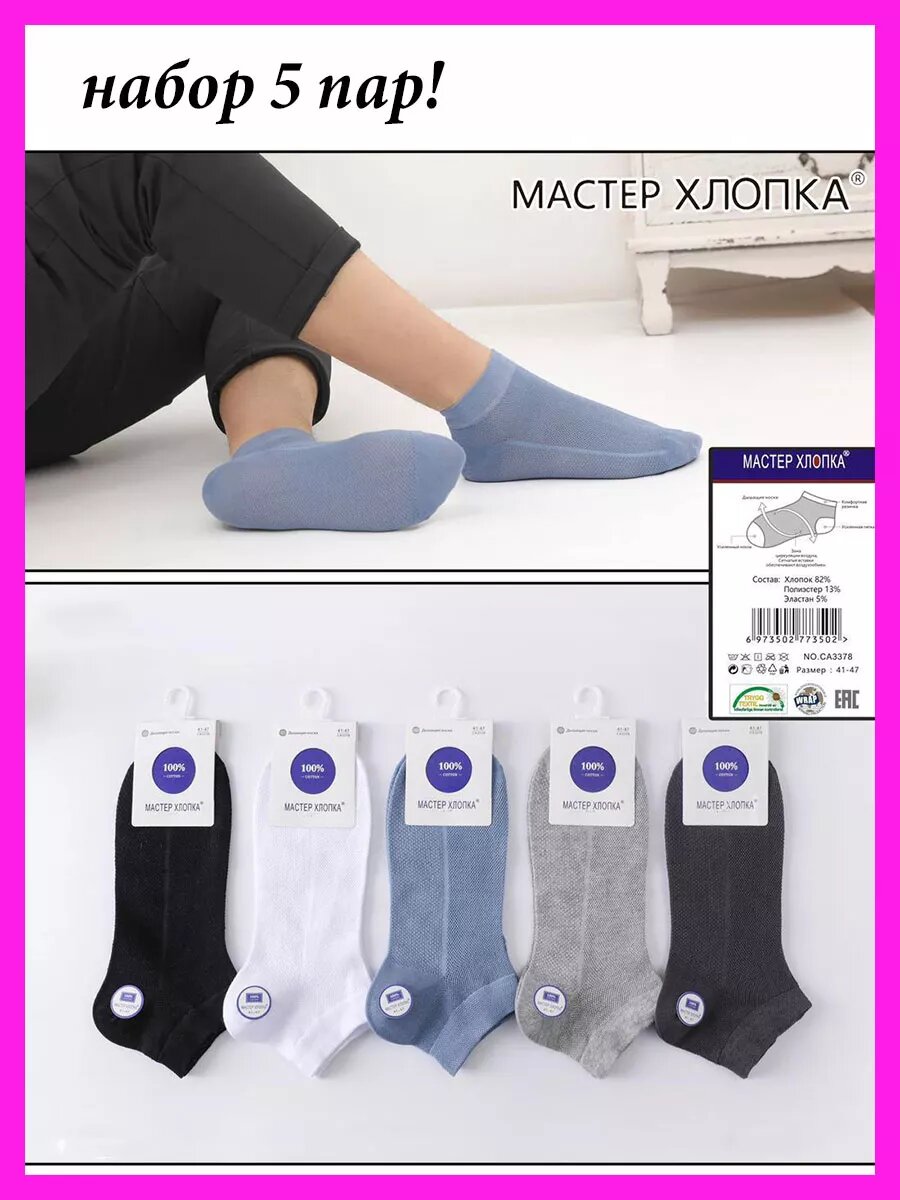 10 цен на Носки МАСТЕР ХЛОПКА CA3378-5/белый, черный, голубой, светло-серый, темно-серый41-43, размер 41-43, черный, белый, серый, голубой