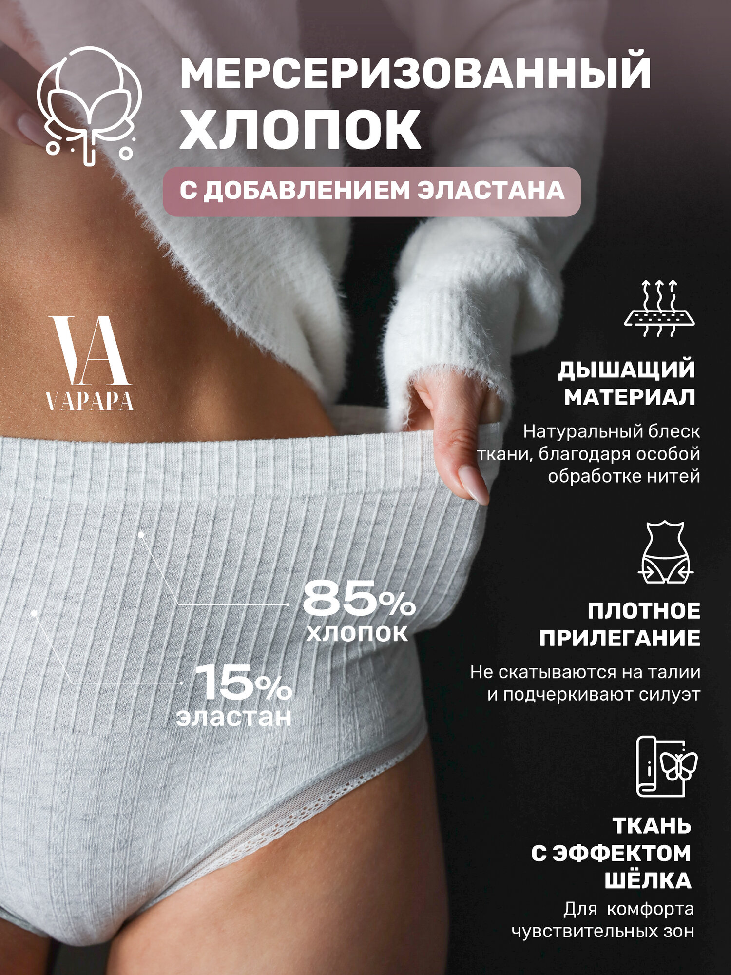 Трусы VAPAPA Трусы женские высокая талия слипы, хлопок, набор, размер 42-46, серый 850 ₽