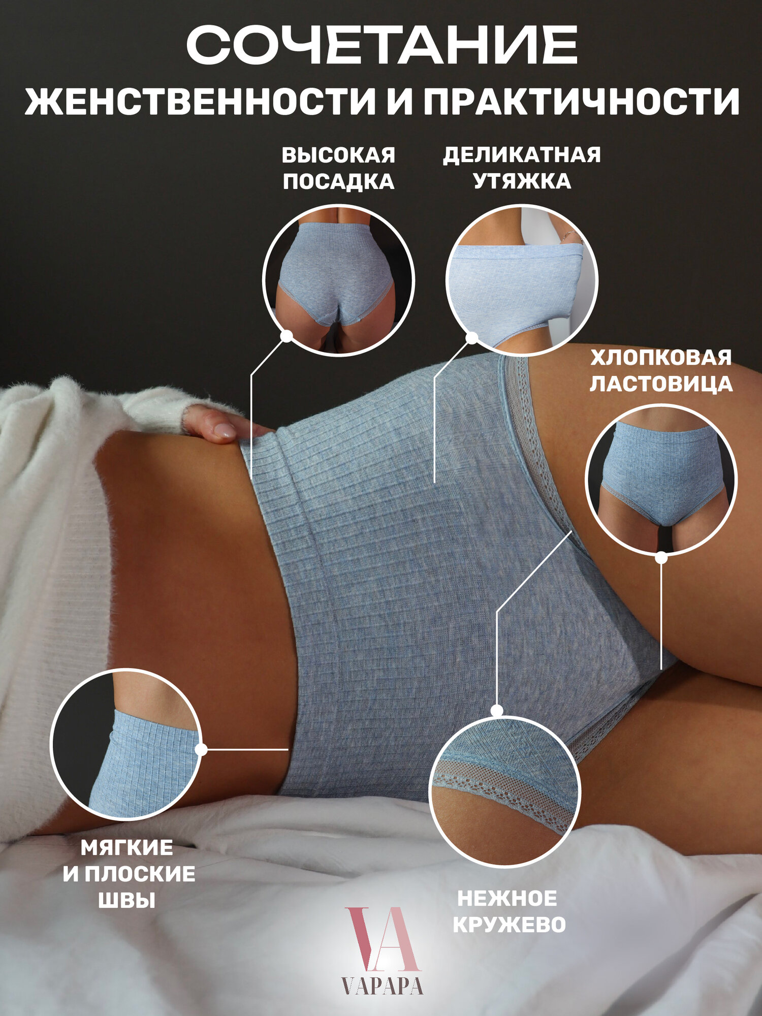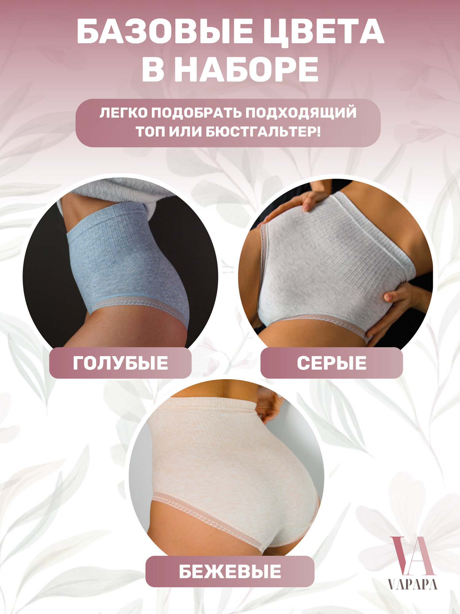 10 цен на Трусы VAPAPA Трусы женские высокая талия слипы, хлопок, набор, размер 42-46, голубой, серый, бежевый