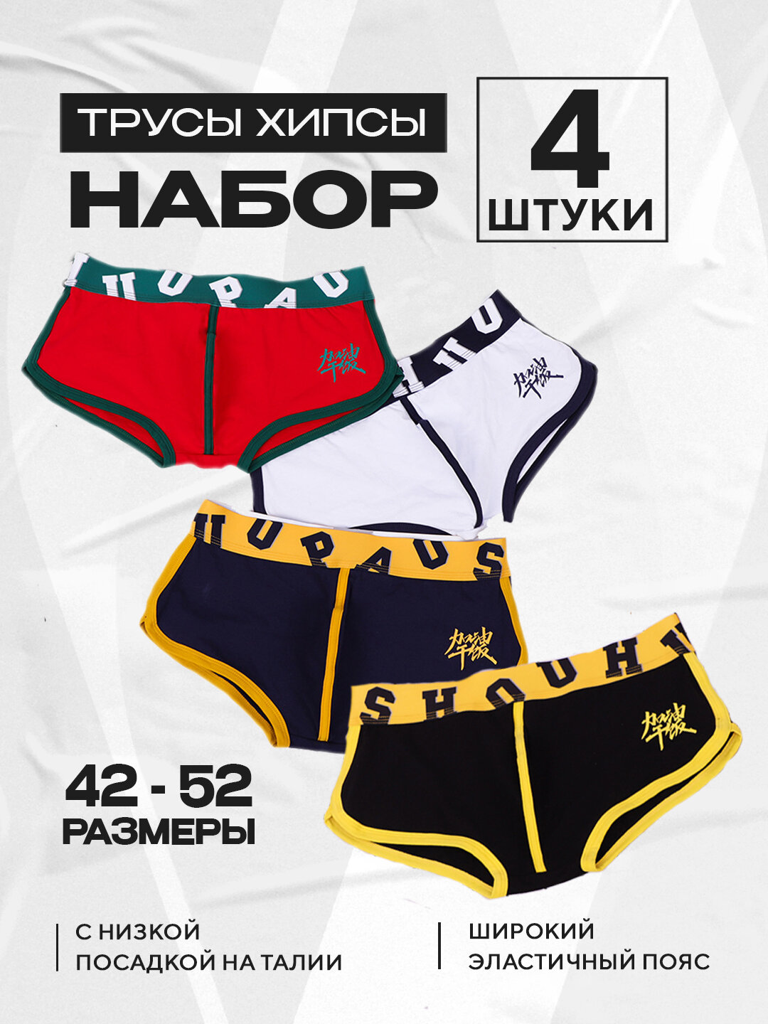 Характиристики этого товара не найдены!Отзывы на Трусы , комплект из 4 шт., размер XXL, красный, синий, белый, черный