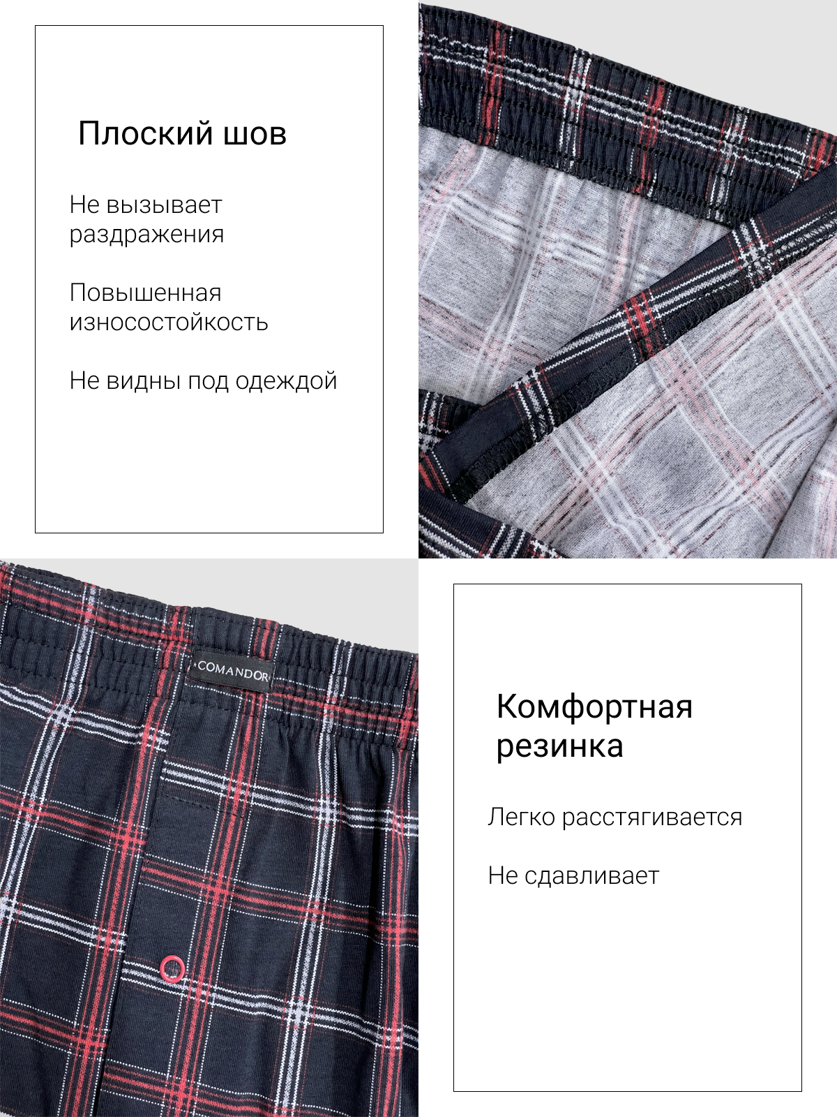 Характиристики этого товара не найдены!Отзывы на Трусы COMANDOR мужские с принтом Клетка из хлопка, черные, размер M, черный/красный