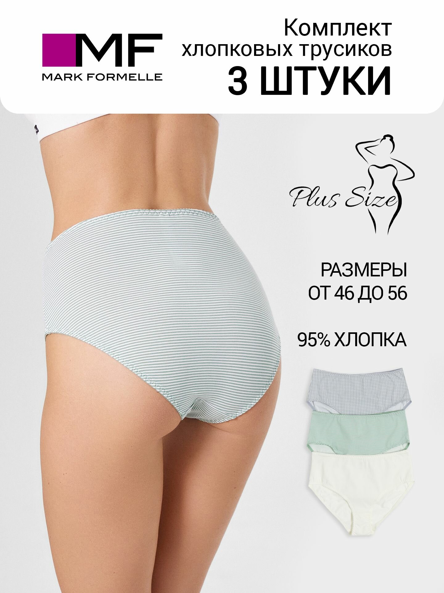 Характиристики этого товара не найдены!Отзывы на Трусы MARK FORMELLE Нижнее белье, комплект из 3 шт., размер XL, зеленая полоска