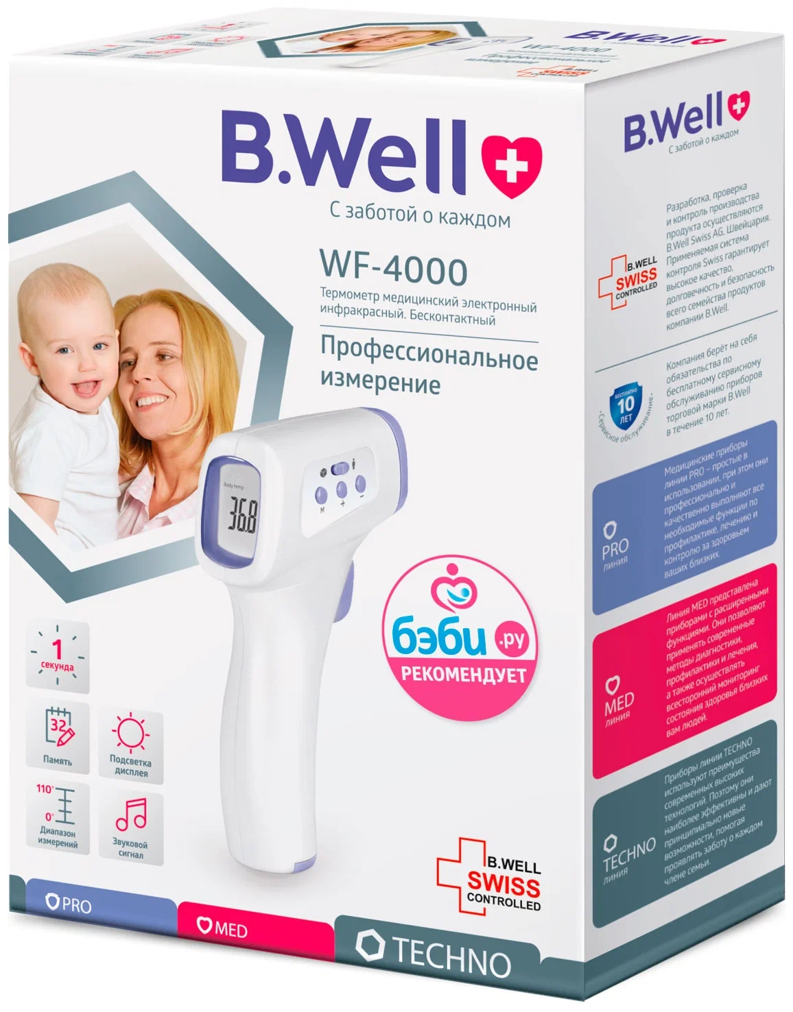 Термометр B.Well WF-4000 инфракрасный, медицинский, профессиональный, бесконтактный, точный, для взрослых и для детей, термометр для тела