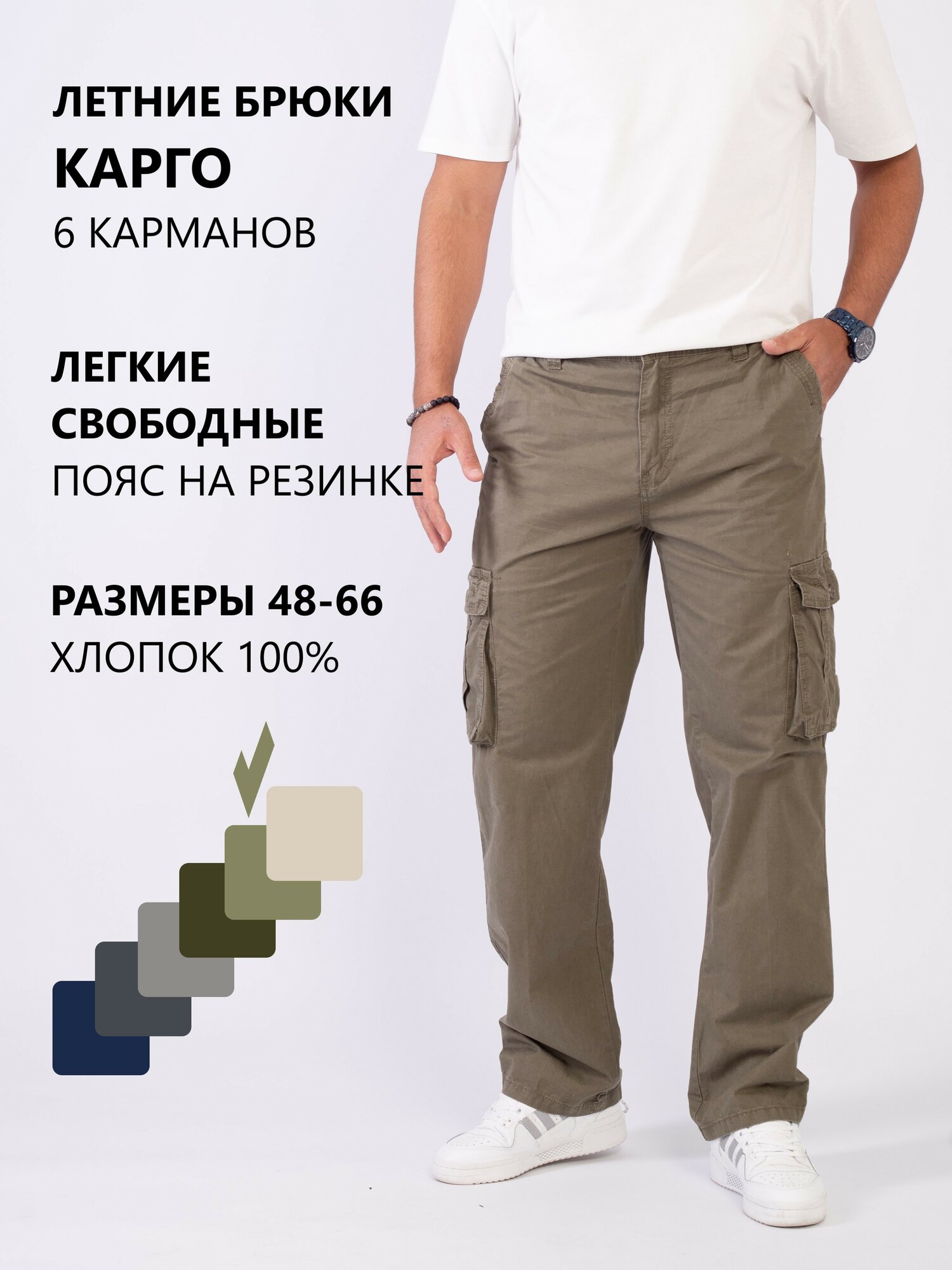 Брюки карго RAREBONE, размер 7XL-RU 62, хаки 3 790 ₽