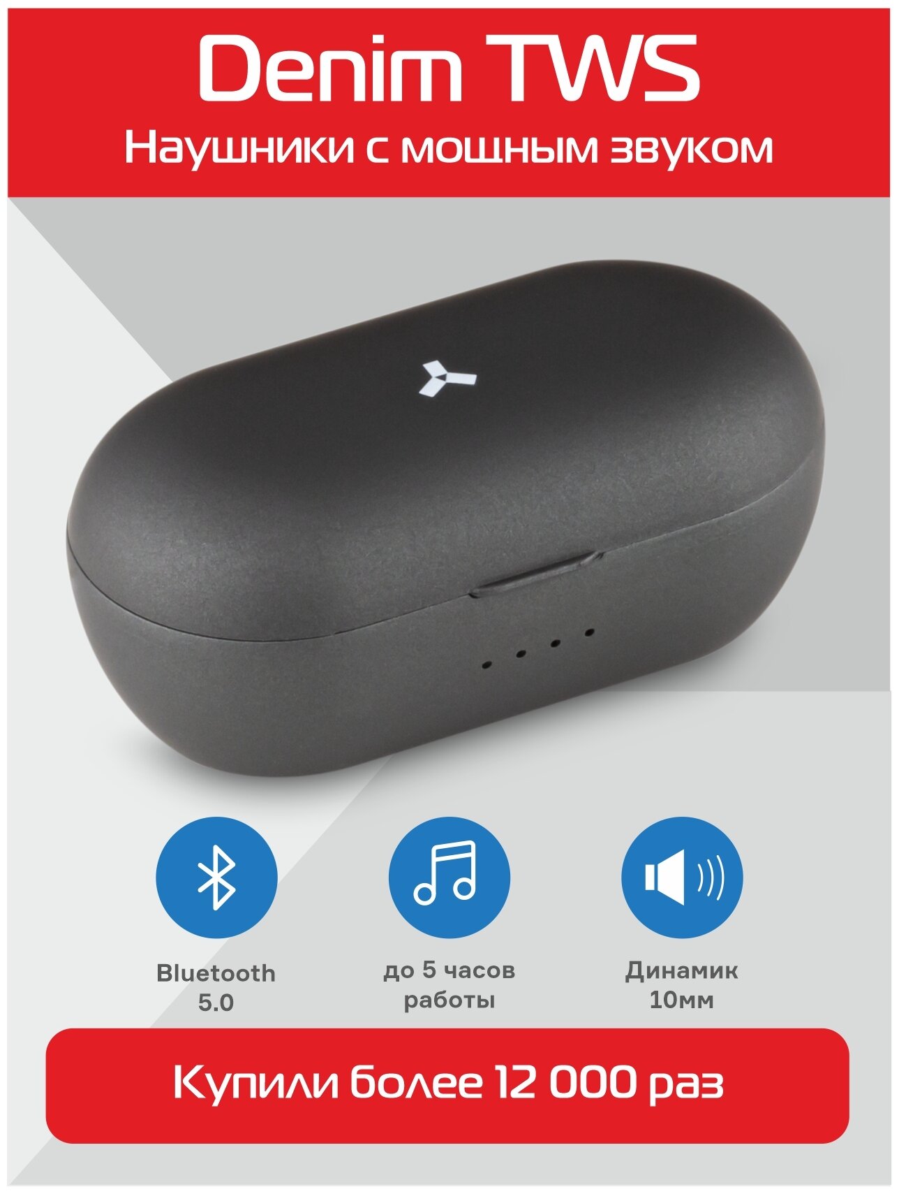 Наушники и гарнитуры accesstyle Наушники Accesstyle Denim TWS, беспроводные, вакуумные, BT 5.0, 50/300 мАч, IPX5, черные 1 350 ₽