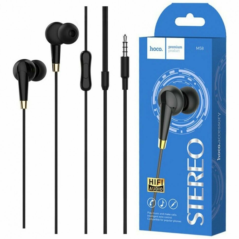 Отзывы на Наушники вкладыши с микрофоном Hoco M58 Amazing Black, мобильная гарнитура, черные
