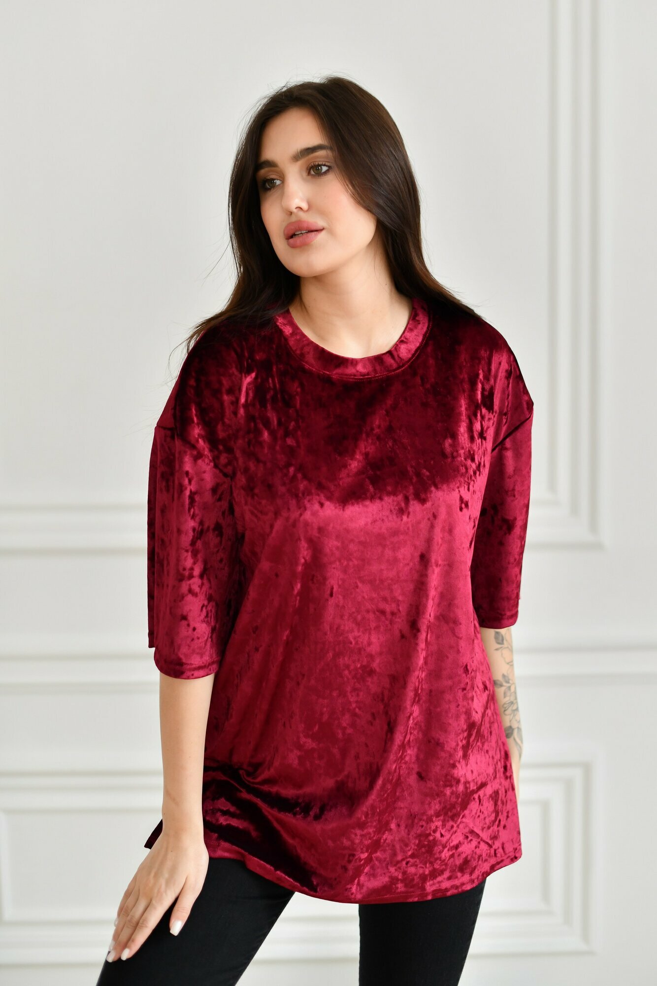 Футболка BUY-TEX.RU женская, велюровая, оверсайз, размер 50, бордо 1 199 ₽