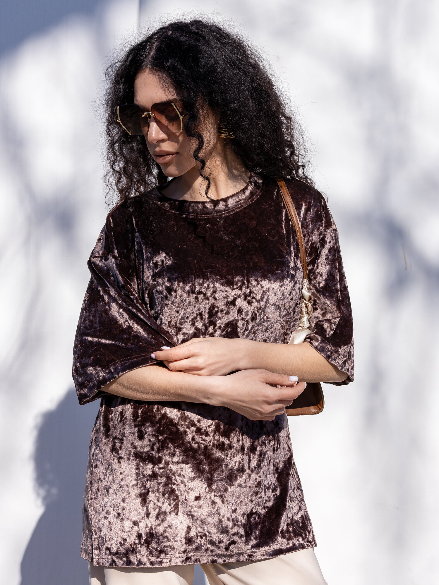 Характиристики этого товара не найдены!Отзывы на Футболка BUY-TEX.RU женская, велюровая, оверсайз, размер 48, кофе