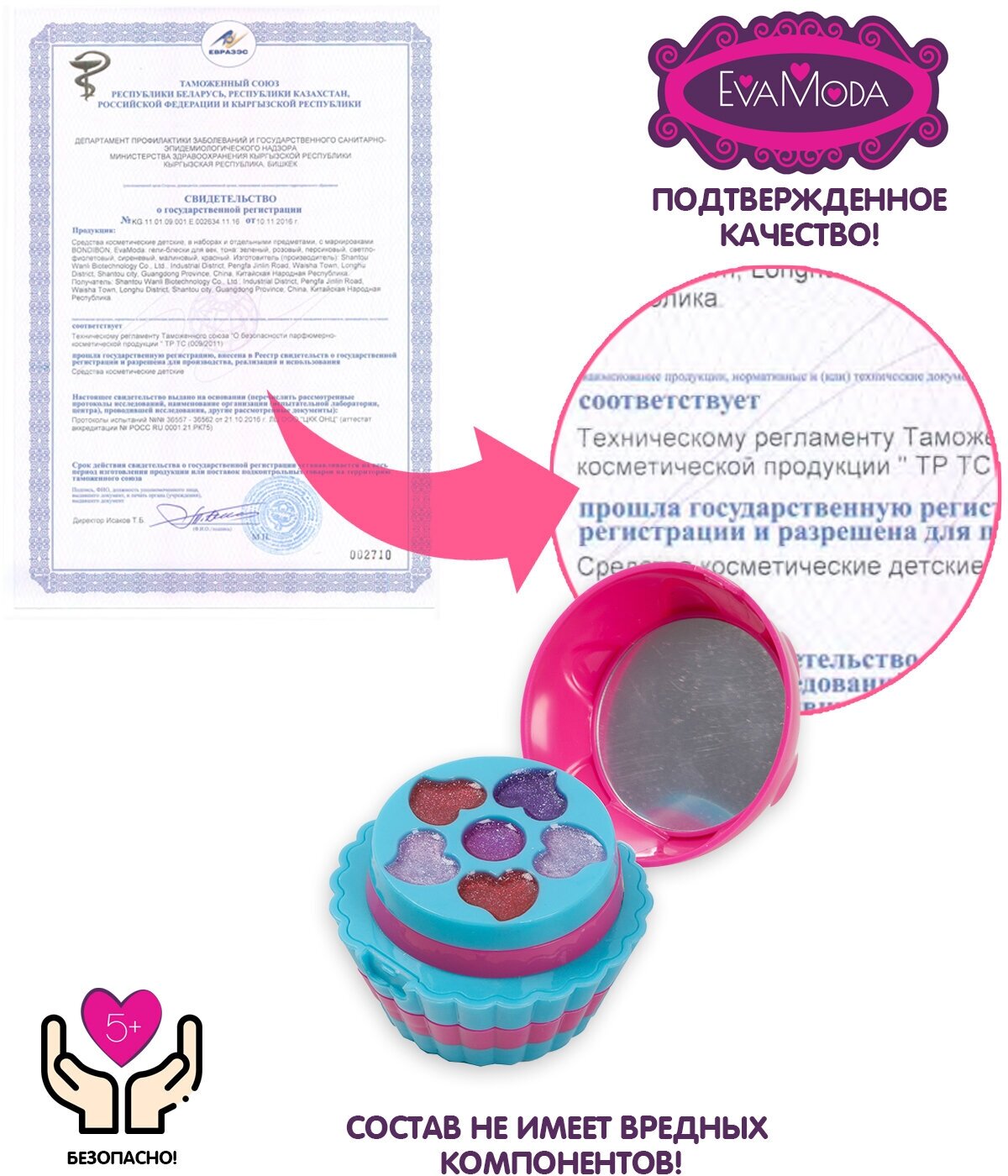 Набор декоративной косметики для девочек Bondibon Eva Moda Косметичка пирожное с зеркальцем подарок девочке информация: