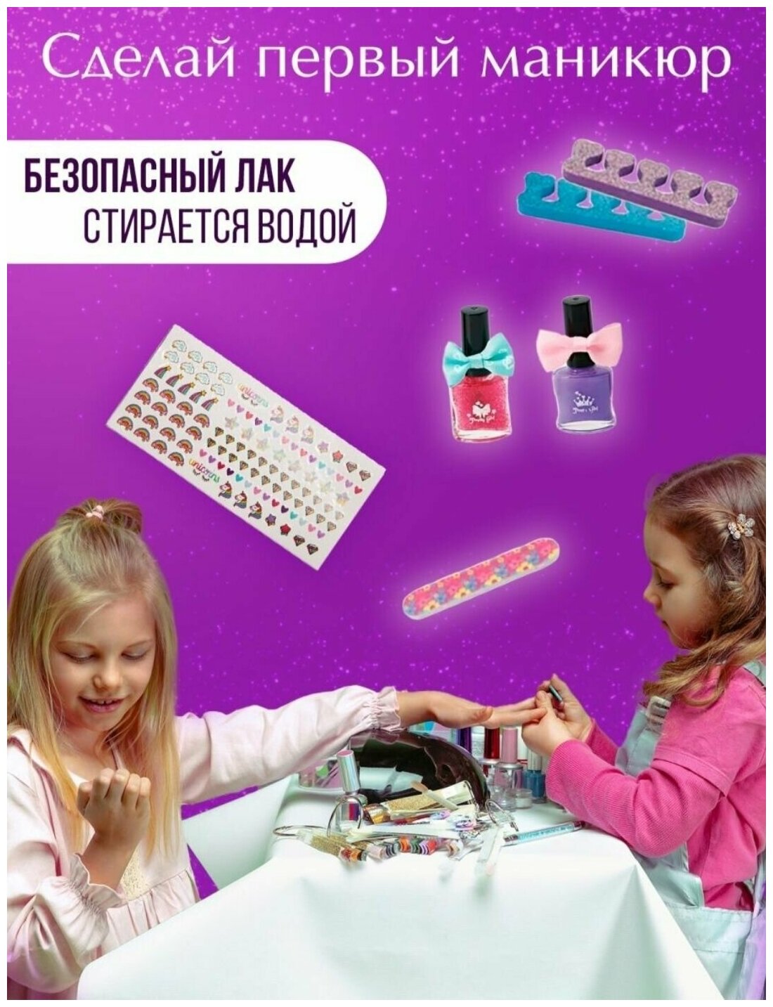 Накладные ногти Выбражулька "Единорожек" для детей, с дизайном, 24 шт.