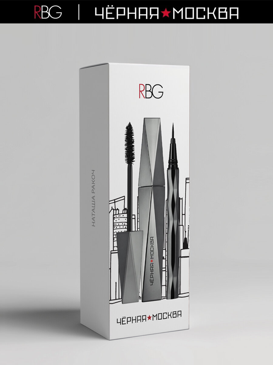 Подарочный набор RBG "Подарок из Москвы", черная термотушь для ресниц 12 мл и подводка лайнер черная, гипоаллергенная информация: