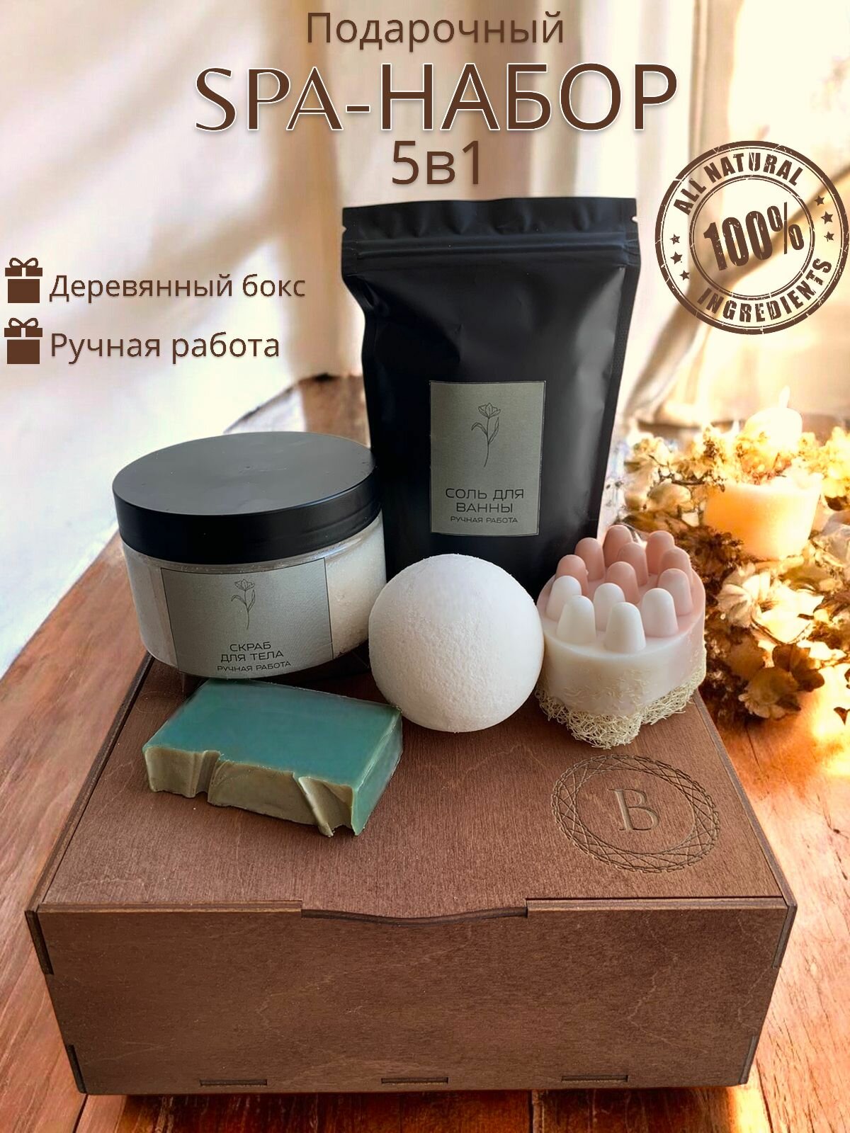 Подарочный SPA- набор 5в1, ручной работы, в коробке из натурального дерева информация: