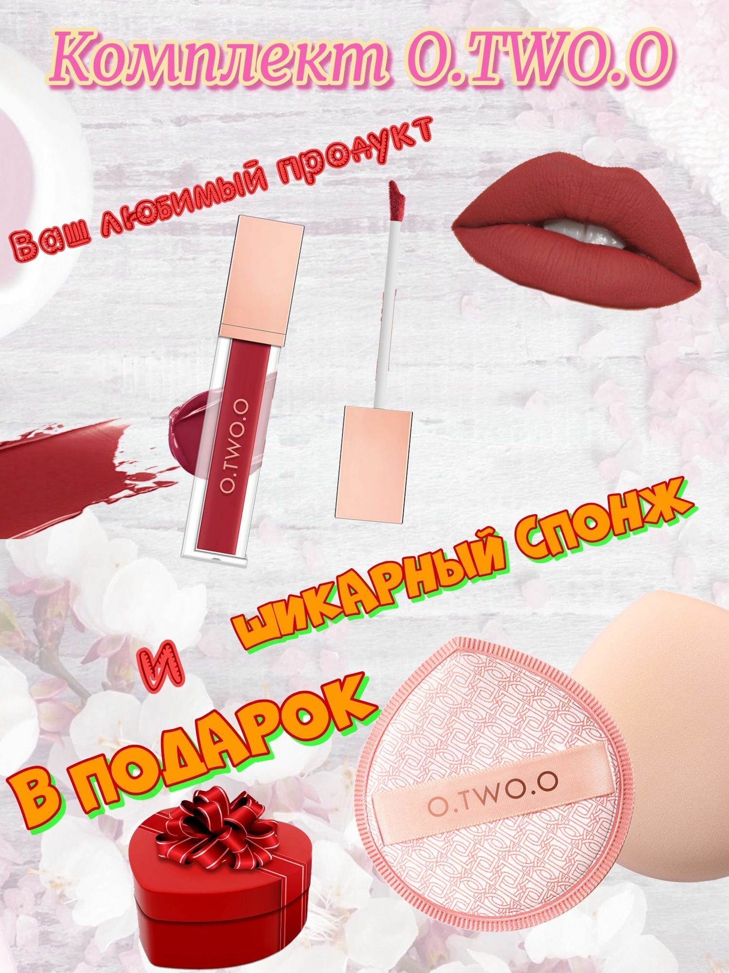 Набор O.TWO.O: Матовый тинт для губ, тон 06(Красно-Кофейный),5гр + спонж в подарок. 599 ₽