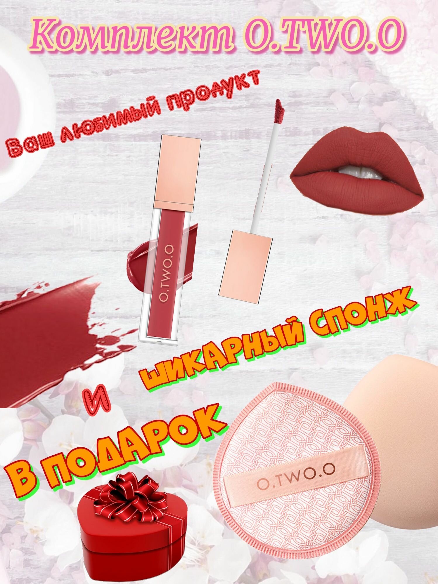 Набор O.TWO.O: Матовый тинт для губ, тон 06(Красно-Кофейный),5гр + спонж в подарок. 599 ₽