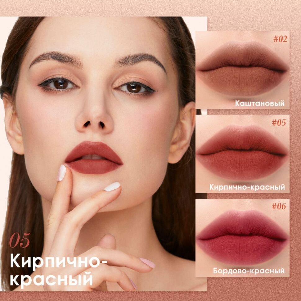 O.TWO.O, Матовая губная помада Matte и вельветовый тинт, 2в1, в оттенке L05(Кирпично-Красный), 2.5гр*4гр 461 ₽