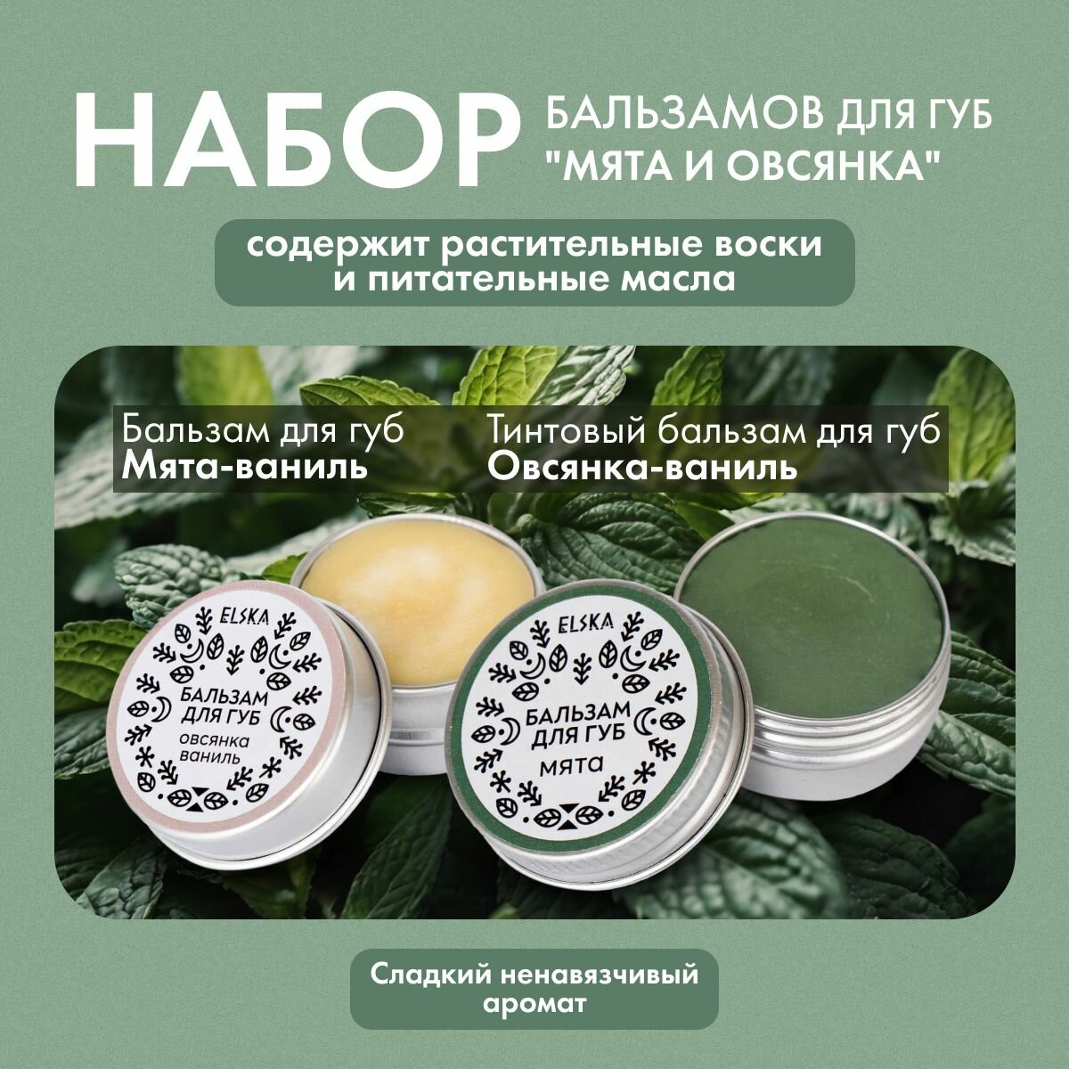 Бальзамы для губ Elska "Мята и овсянка", 2 баночки по 10 мл, эфирное масло мяты и нежная овсянка информация: