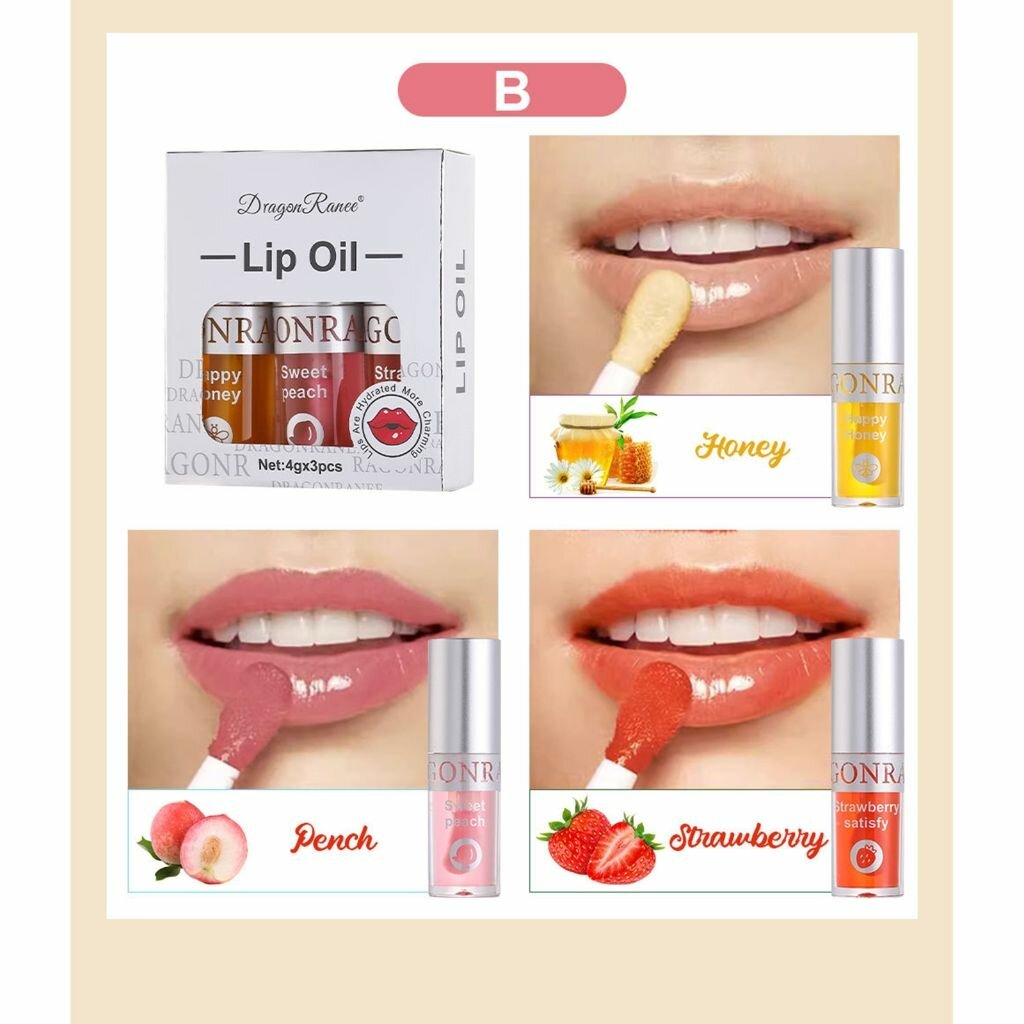 Блеск для губ, Набор с большим кисточкой три женских увлажняющих помады - A, 1 набор информация: