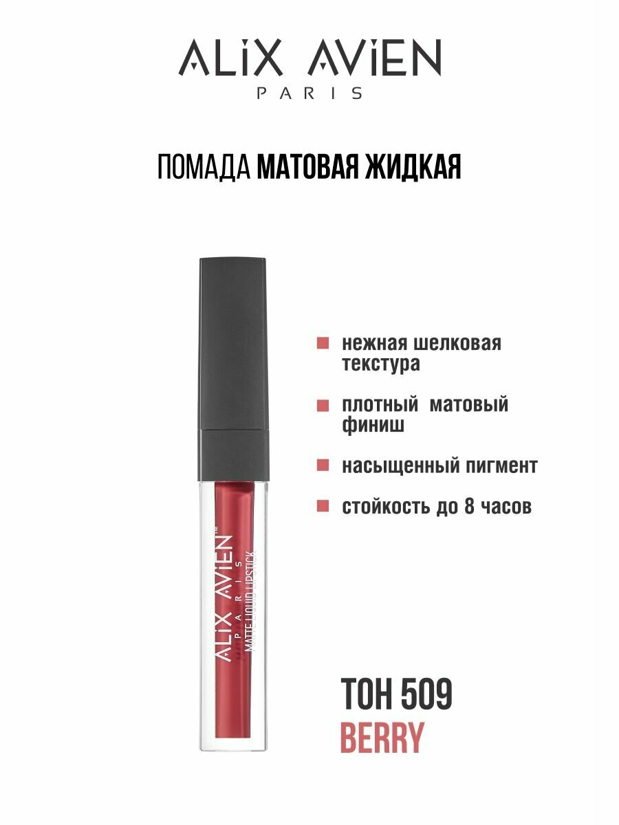 Жидкая помада для губ ALIX AVIEN, оттенок 509, матовая, стойкая информация: