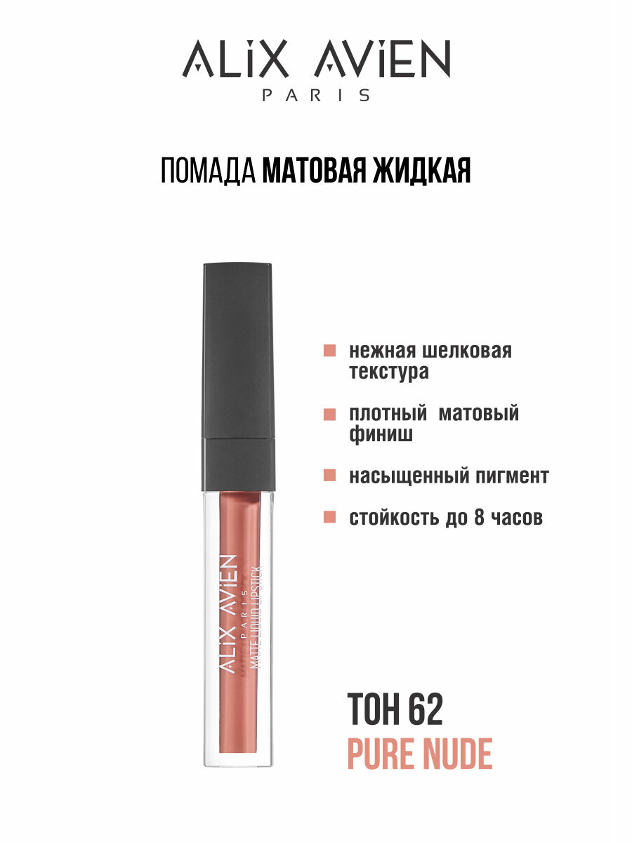Отзывы на Жидкая помада для губ ALIX AVIEN, оттенок 62, матовая, стойкая