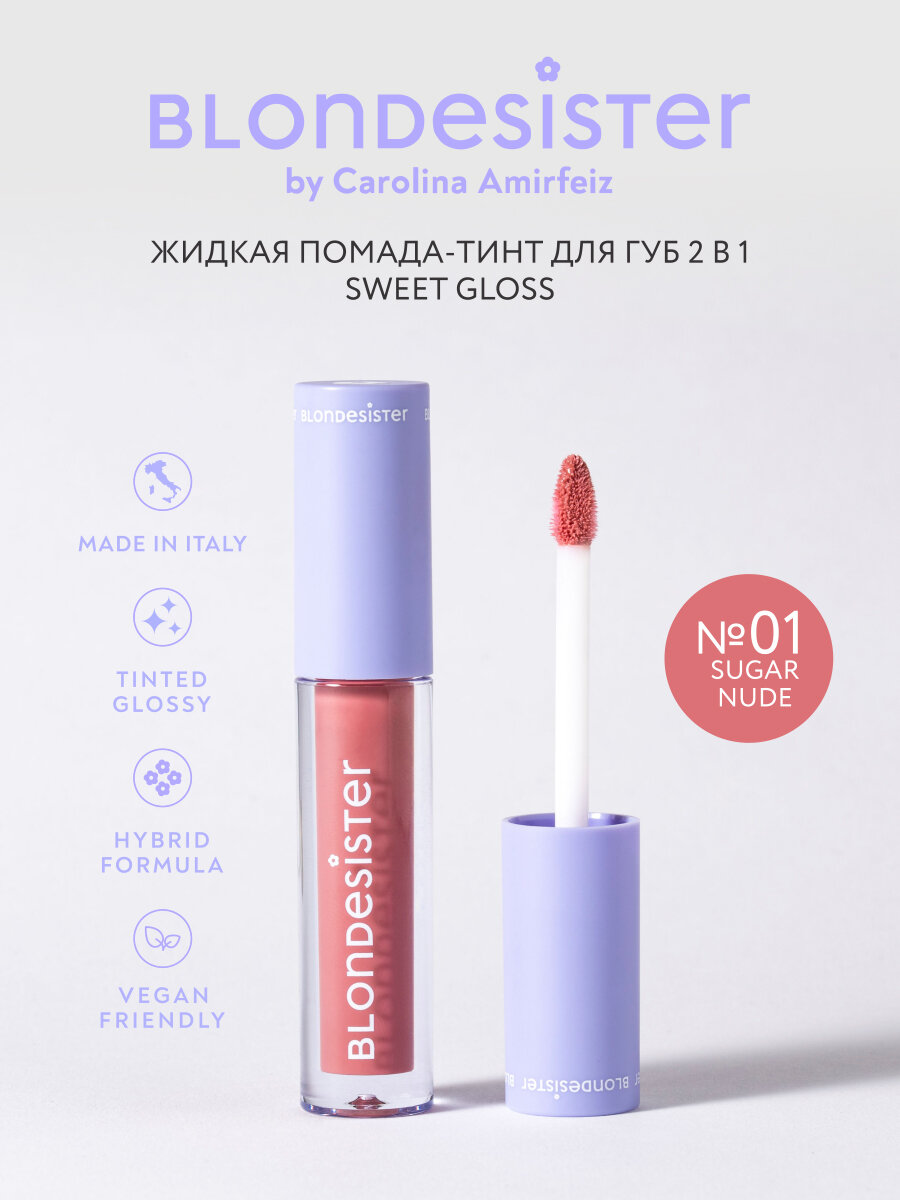 Жидкая помада тинт блеск для губ 2 в 1 BLONDESISTER SWEET GLOSS 01 sugar nude информация: