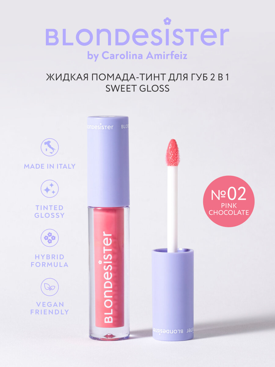 Жидкая помада тинт блеск для губ 2 в 1 BLONDESISTER SWEET GLOSS 02 pink chocolate информация: